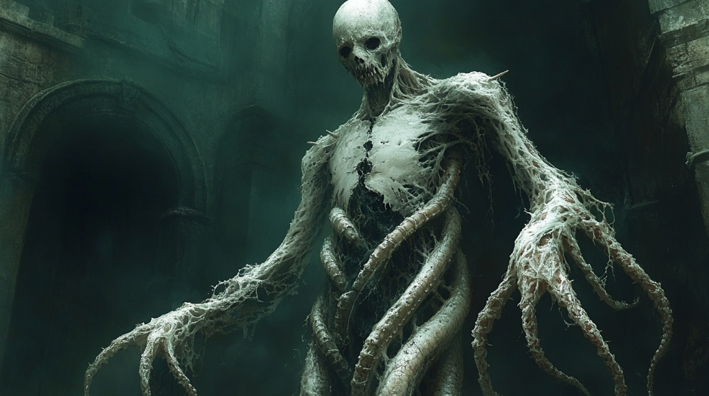 Рот, чуть шире человеческого, постоянно держался приоткрытым, из-за чего создавалось впечатление зловещей ухмылки. Внутри виднелись частые мелкие клыки