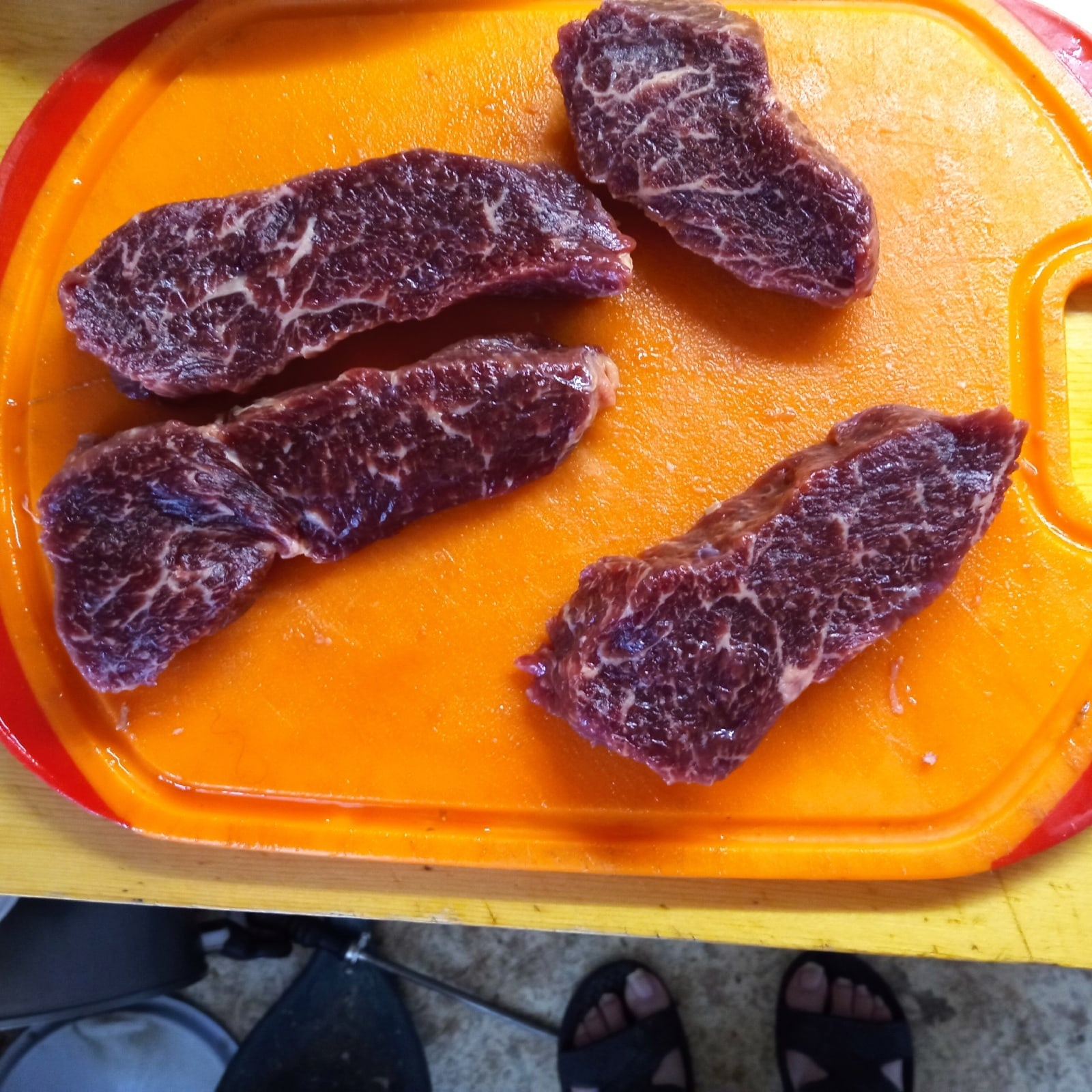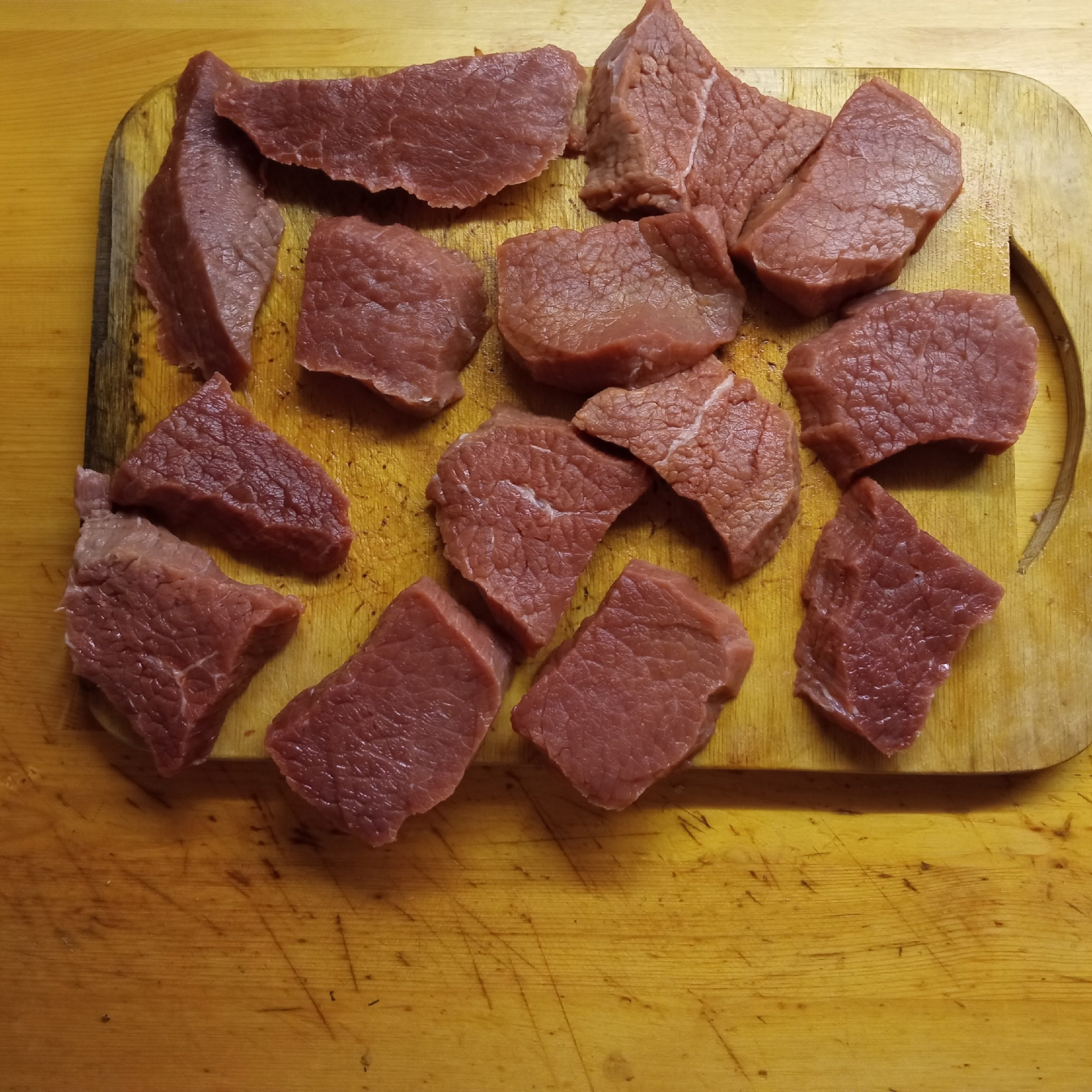 Берем Сербские кованые ножи, дубовую торцевую доску , говядину, репчатый лук и начинаем...