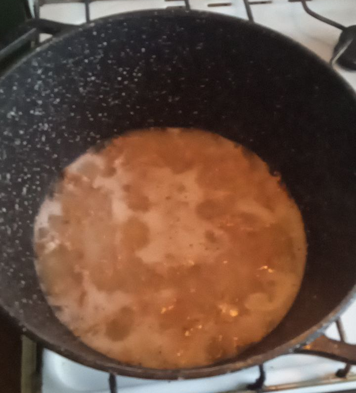 P.S. Извините, в этот момент телефон сел и дальнейший процесс запечатлеть не удалось. Но в итоге получилось такое блюдо (минус примерно литр жидкости).