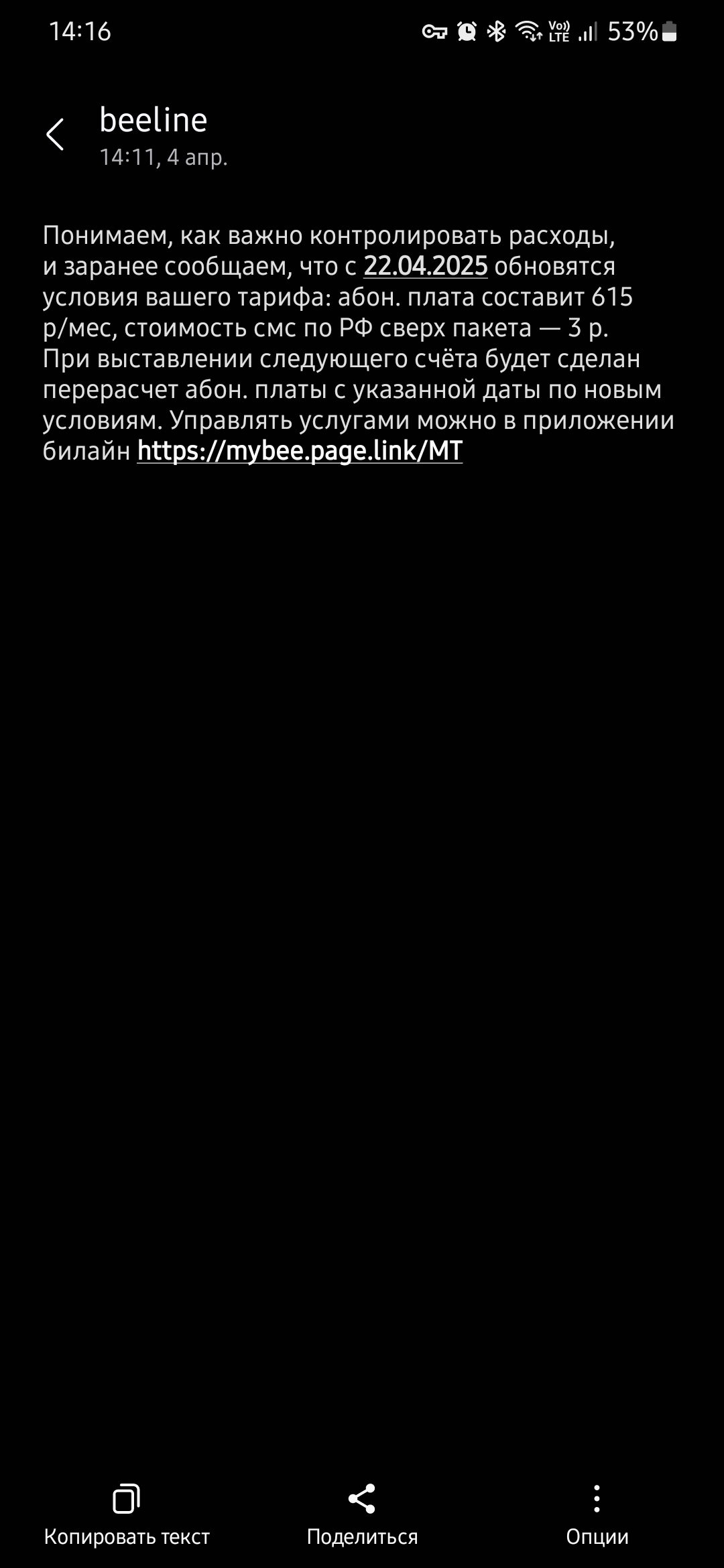 Winchester163 6 месяцев назад Билайн опять поднимает цены Был тариф 515р. Теперь будет 615р. Практически сразу 20% сверхуИнфляция ж 9-10% Текст Билайн Цены Длиннопост 1 Ещё 0