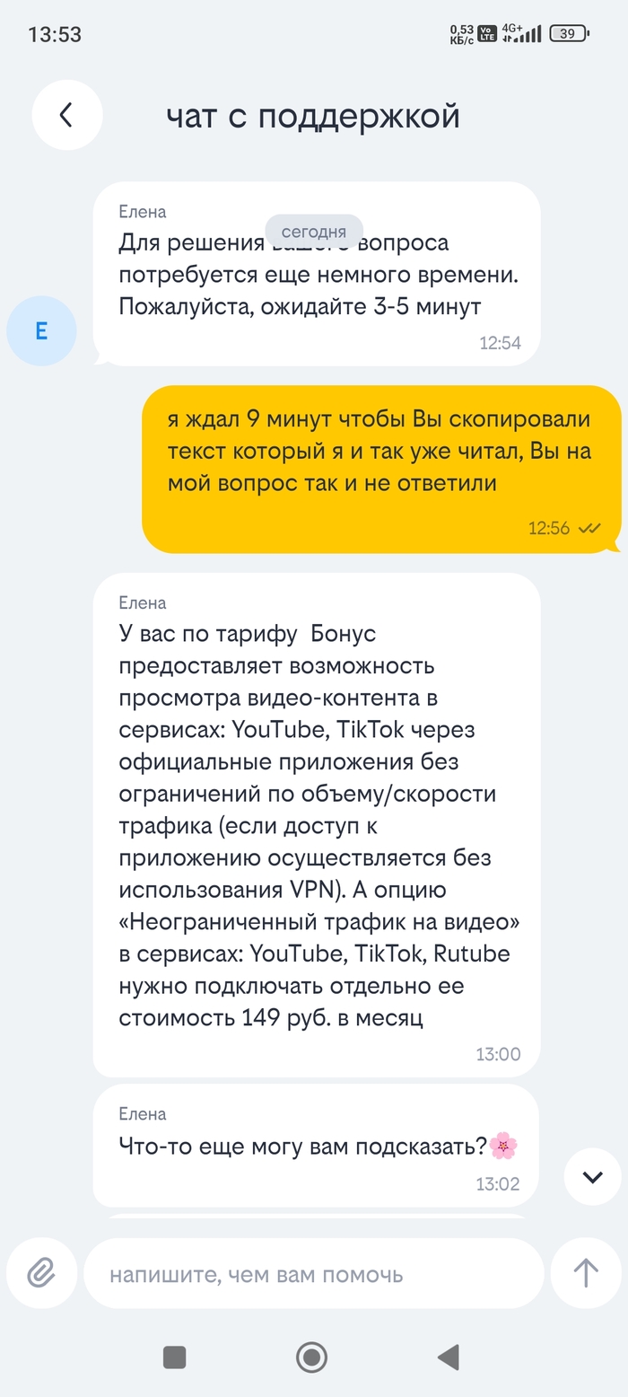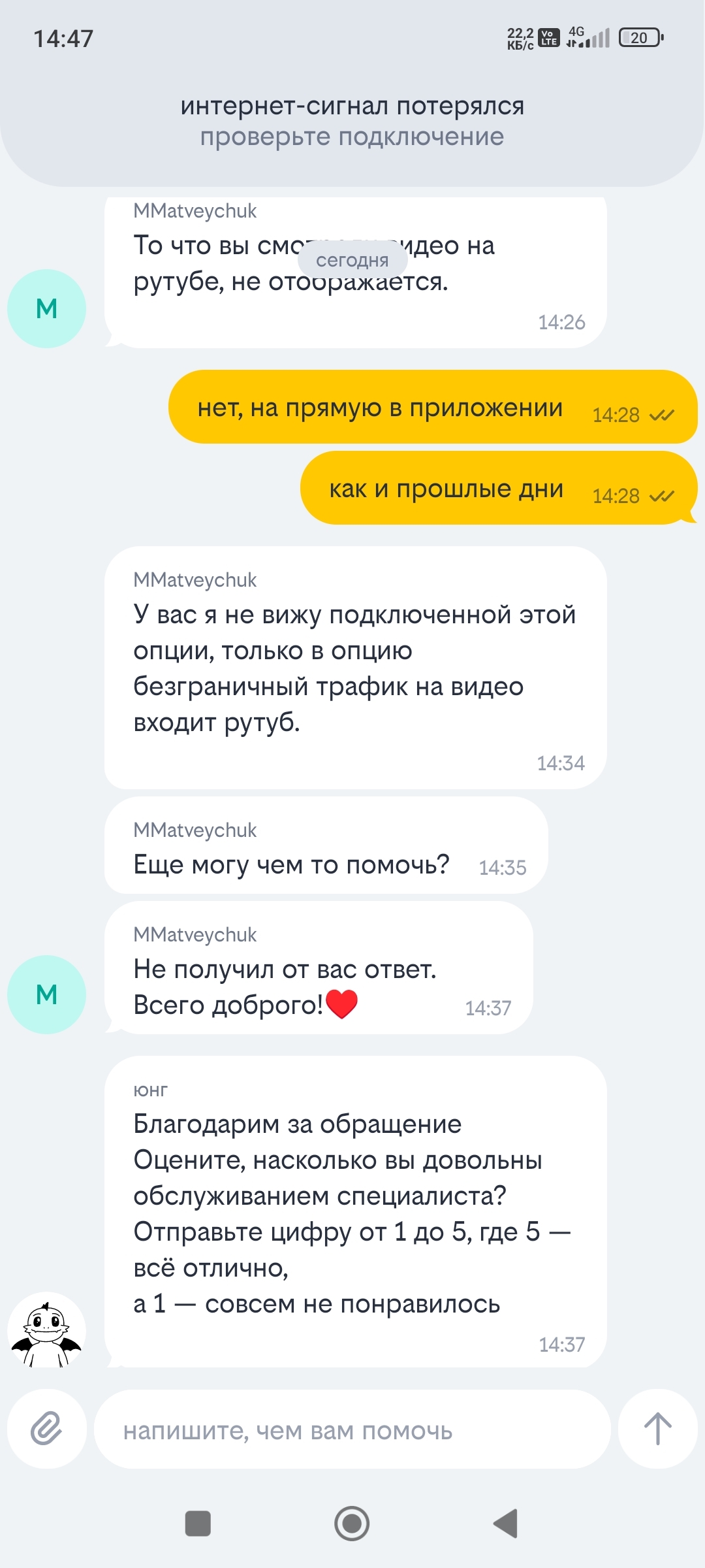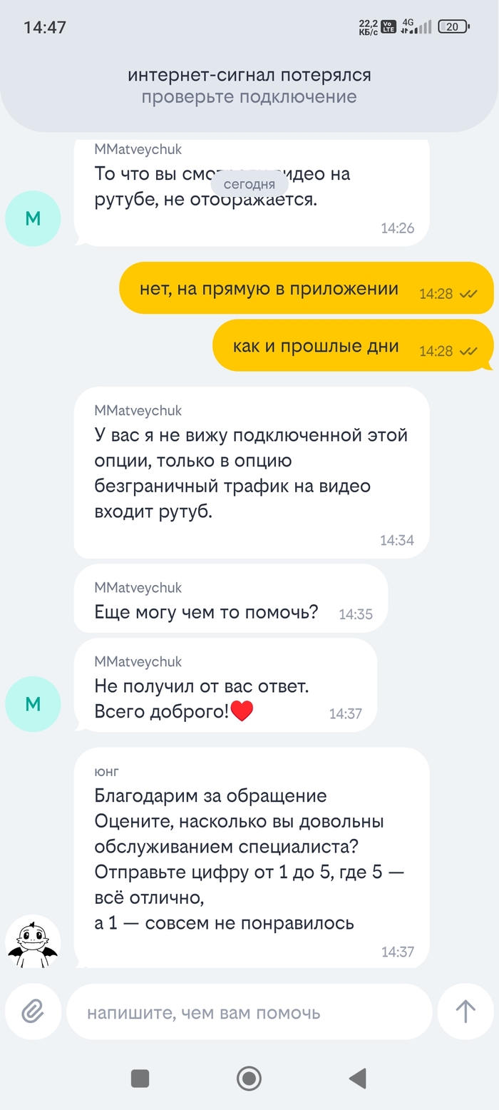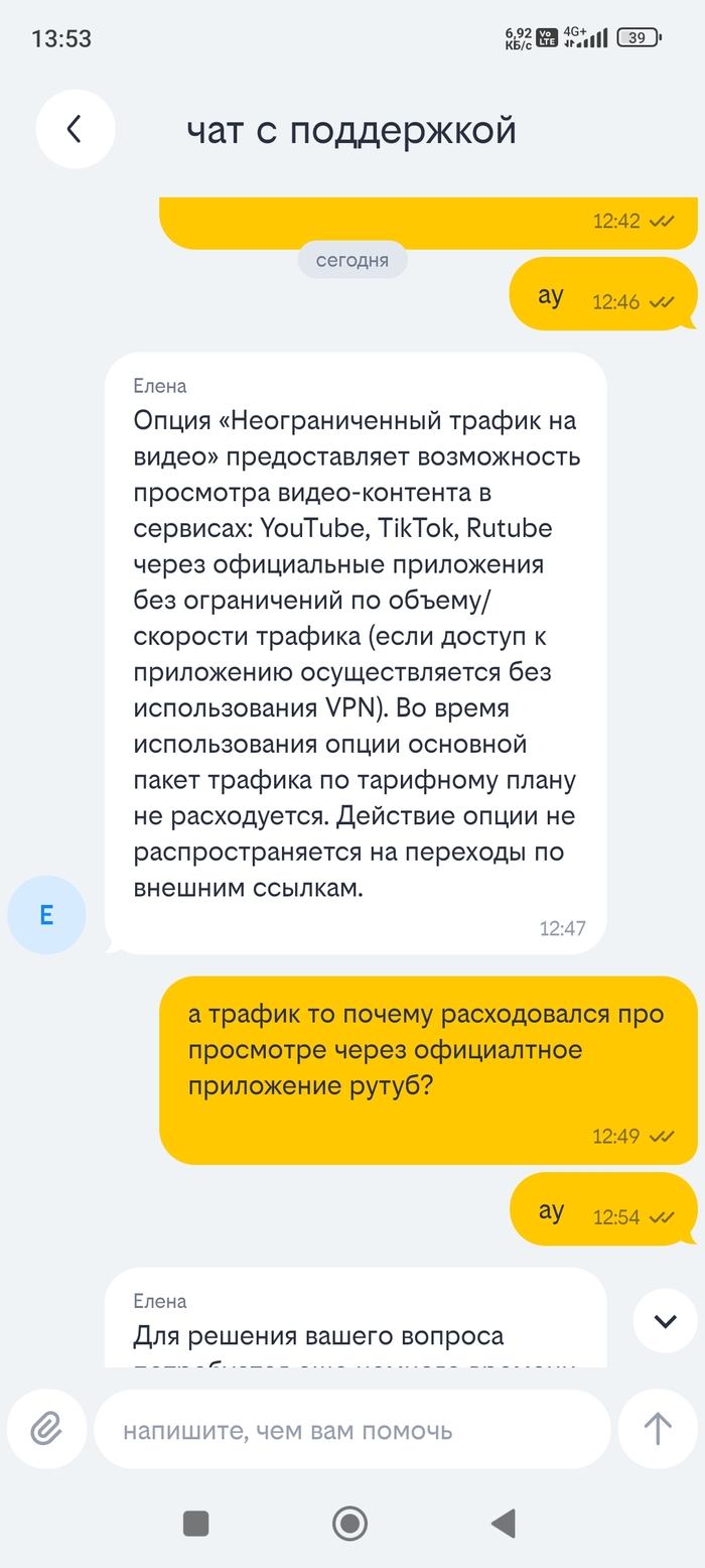 К сожалению при втором обращении оператор просто завершил диалог, так и не ответив ничего.