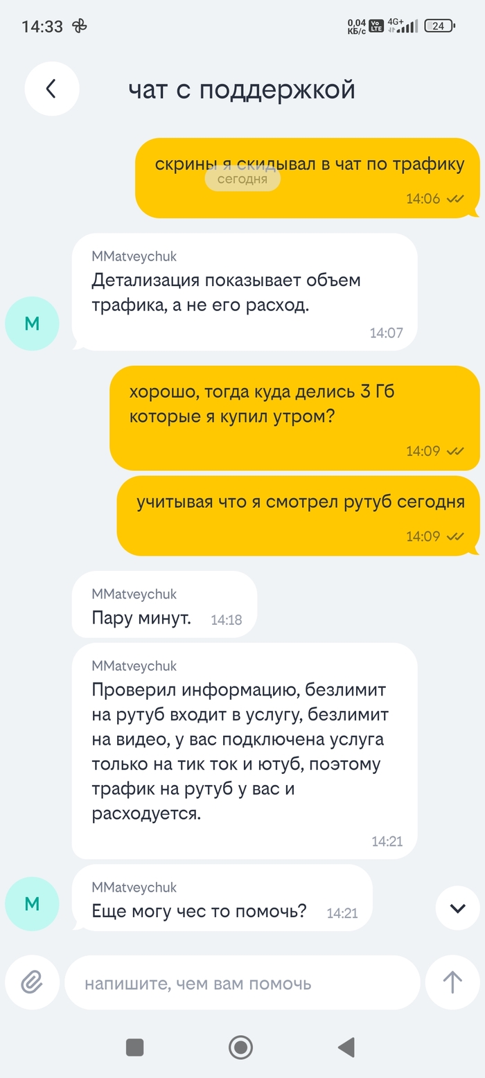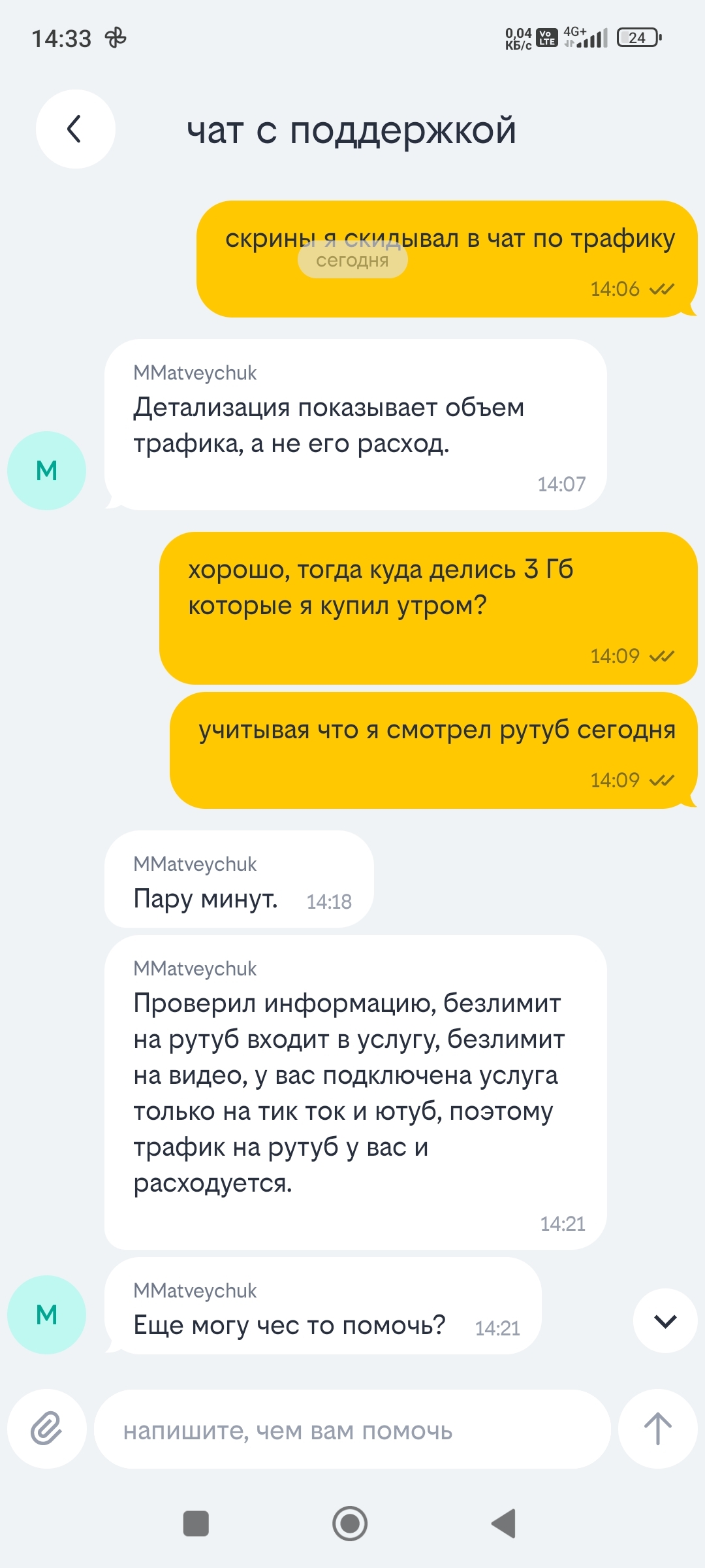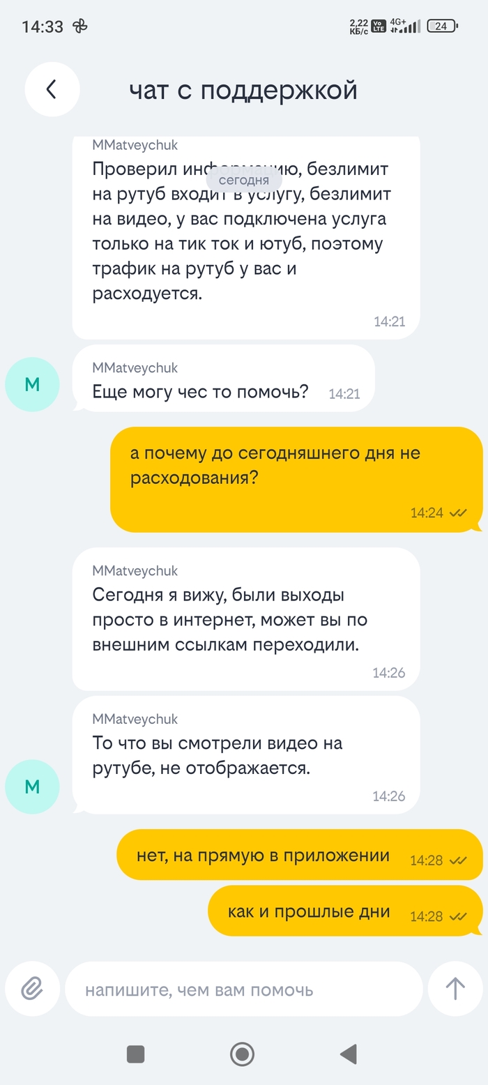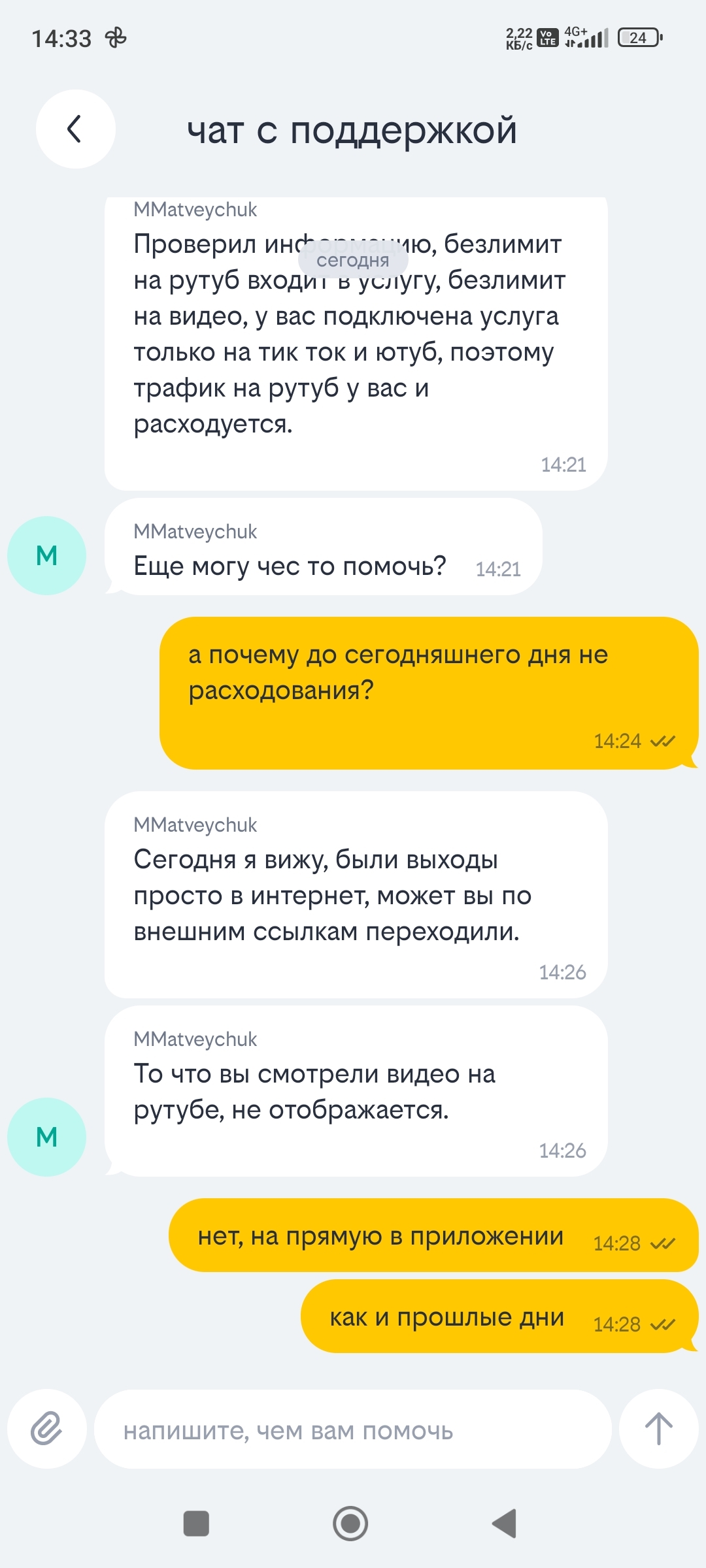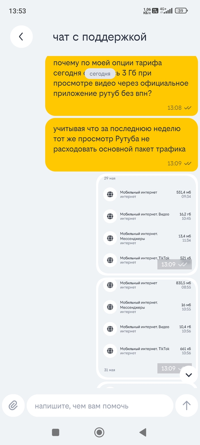 Может кто-то сможет объяснить, почему у меня только с сегодняшнего дня пошел расход трафика, хотя в тарифе указанно, что тик ток(которого у меня нет, но в статистике показывается), ютуб и рутуб - безлимит.