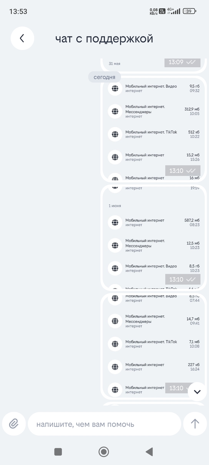 Так же прикладываю в комменты скрины по детализации недельной, тут как мне ранее операторы объяснили, расход "Мобильный интернет. Видео." - это как раз то что трафик на расходует (я на работе только рутуб поэтому слушаю, получается до сегодняшнего дня)