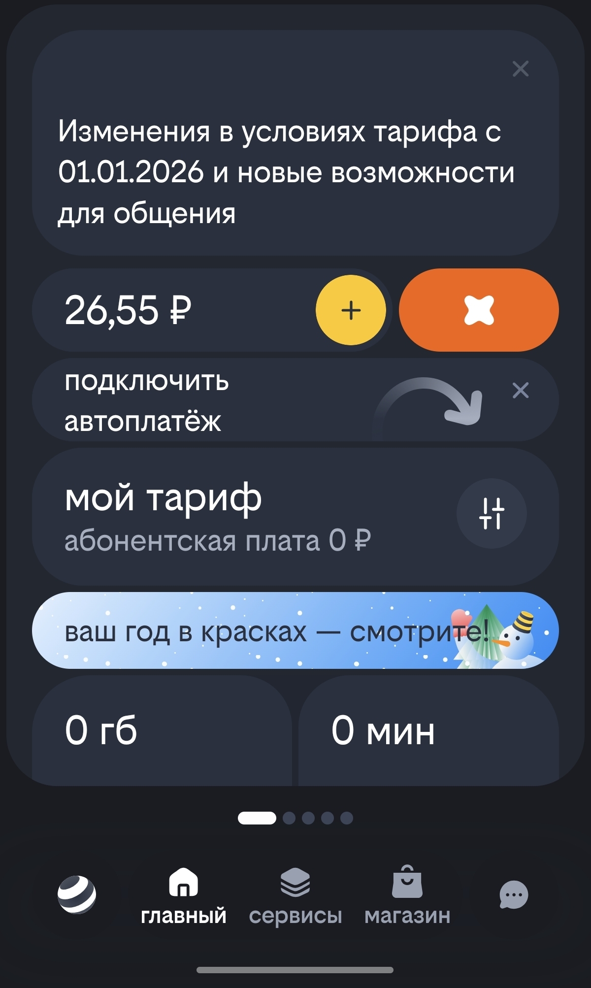 Приходит мне в приложении уведомление. Бегу смотреть - у вас изменения с 1 января (десять дней? Ну, типа почти успели). Тариф UP, по мере надобности подулючала нужное.