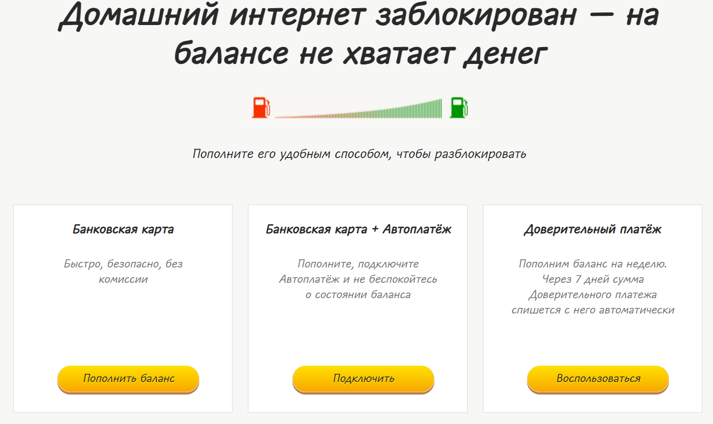 Не беда, — появляется автоматический доступ к странице оператора с вариантами оплаты.