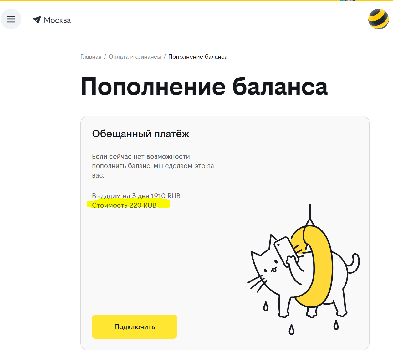 То есть, Билайн предлагает мне небольшой микрозайм или краткосрочный целевой потребительский кредит, причём на сумму, которую я не просил.