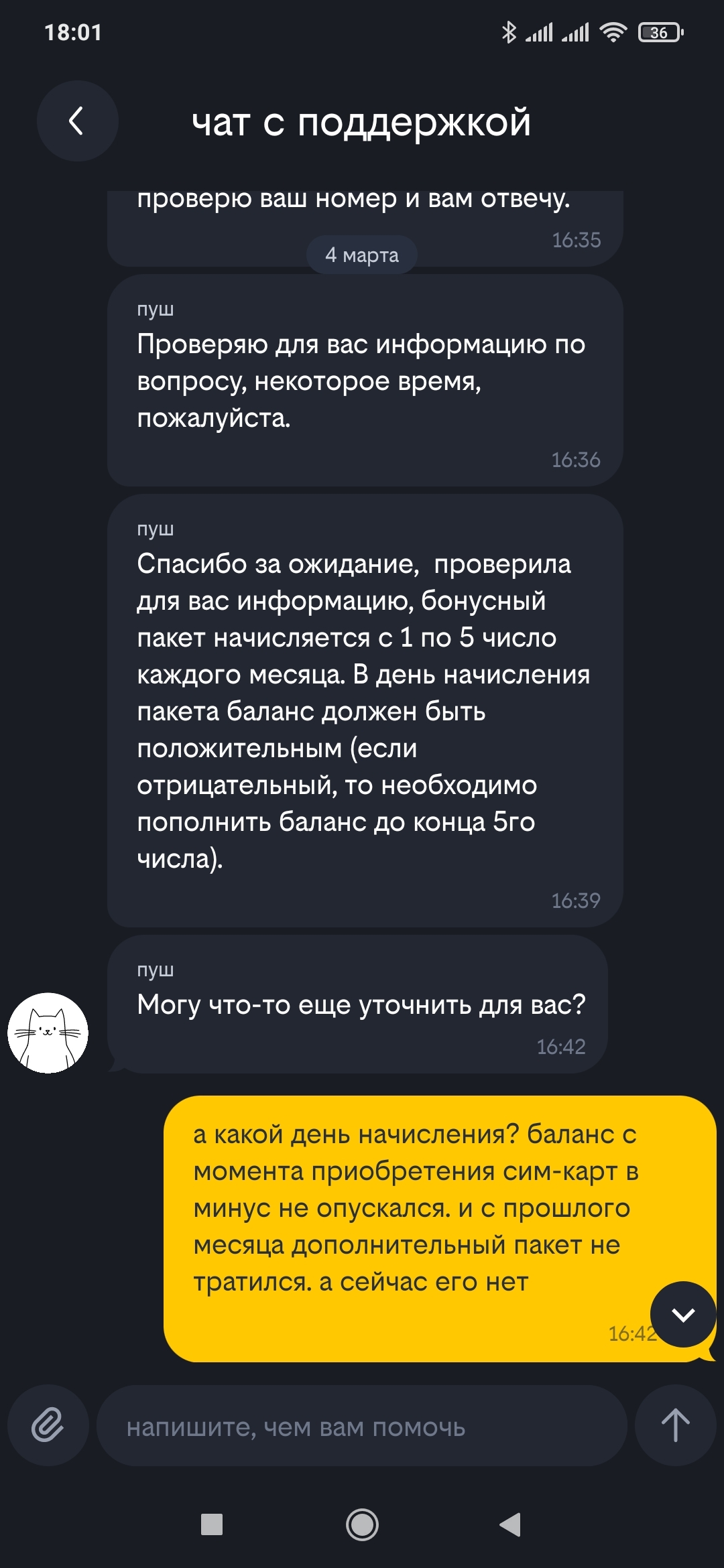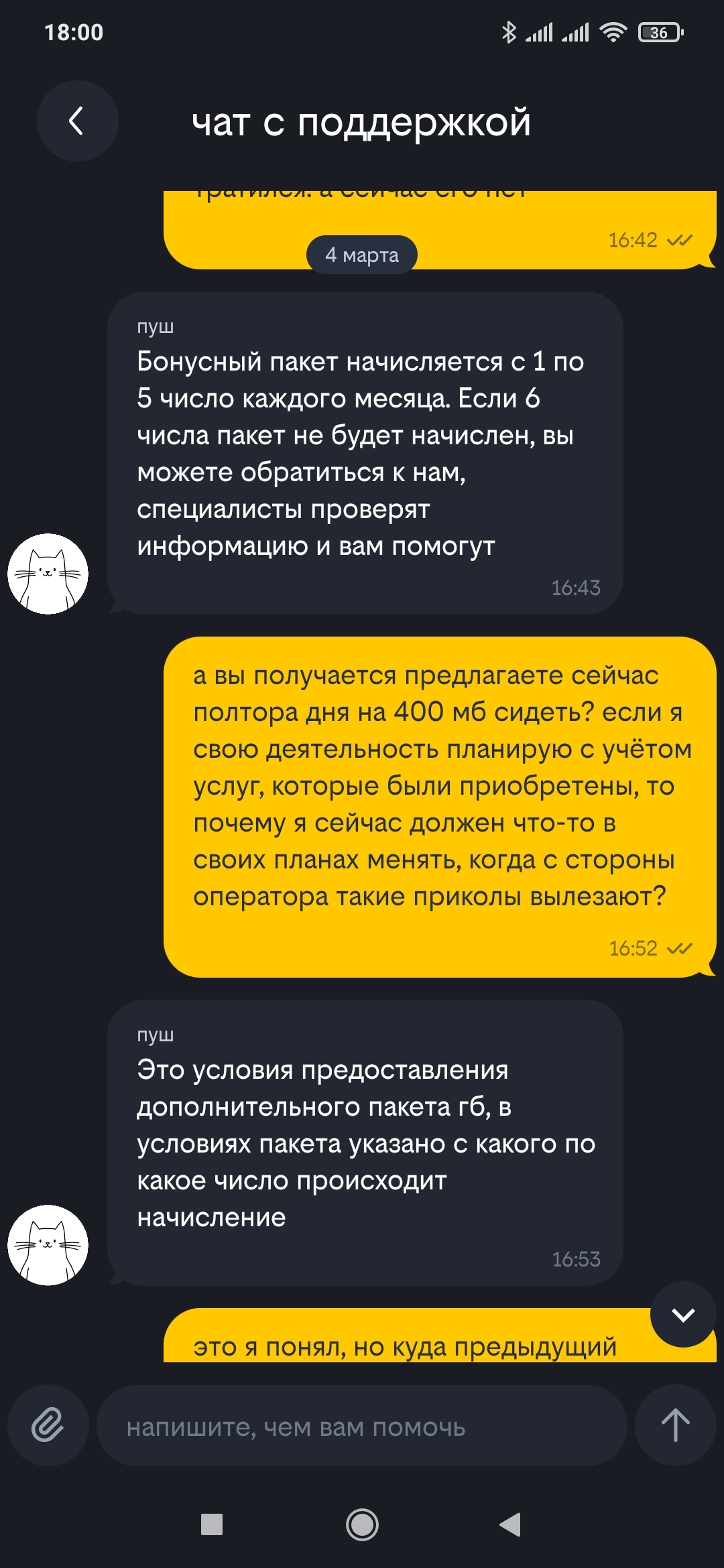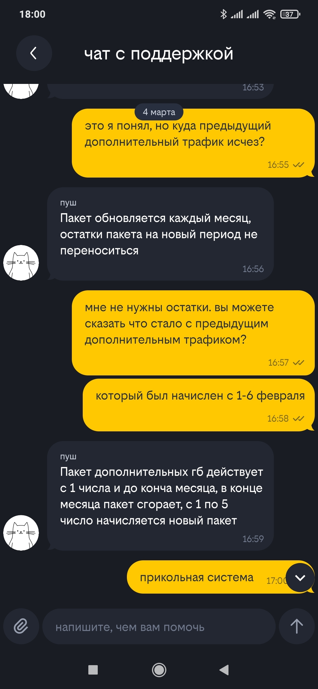 Далее переписка с поддержкой, сразу перешел к делу, задав вопрос: "что случилось с дополнительным трафиком?"
