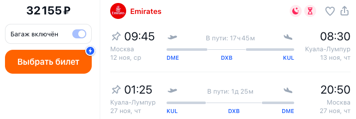 Причем одна дата примерно на нужные мне числа в ноябре... Перелет с пересадкой в Дубае. Вот эти билеты: