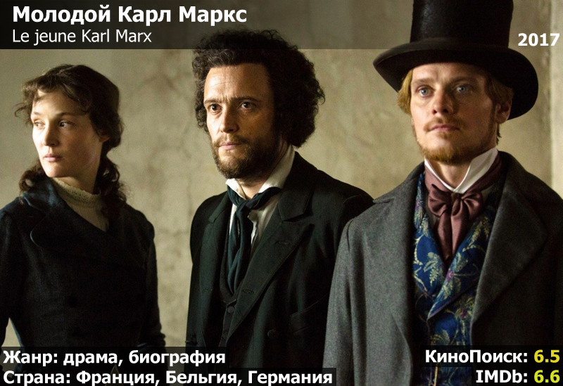 Сухо... этот фильм снят довольно сухо. И скучно. Снимал его не Голливуд, который умеет сделать даже нудную биографическую историю интересной и захватывающей (иногда даже чересчур захватывающей и из-за этого нереалистичной... но не об этом речь). Понятно, что про такого человека, как Карл Маркс, вряд ли бы сняли в Штатах, где доля людей с аллергической реакцией на слово «коммунизм» неимоверно велика. Родины у киноленты сразу три — Франция, Бельгия и Германия. Все это вместе с не самым изобретательным режиссером Раулем Пеком обернулось кинокартиной, которую глянуть для общего развития в принципе можно, но рекомендовать ее для ознакомления с личностью Маркса вряд ли представляется целесообразным. При всем при этом фильм не отвращает, не грузит и определенные эмоции подарить зрителю способен.