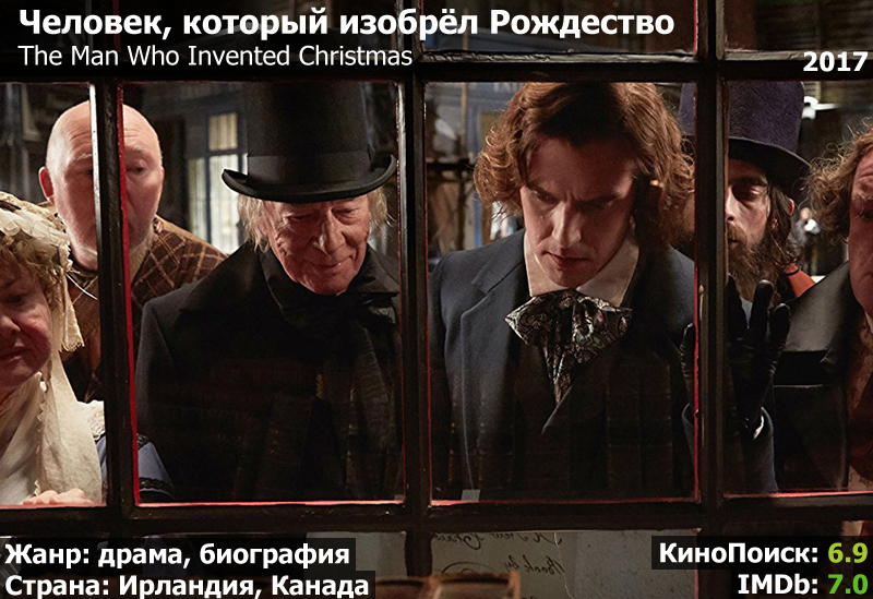 Этот фильм совсем не обязательно смотреть во время праздников. Если вам захочется увидеть чудную, гротескную, не пошлую историю о примирении, доброте и самом настоящем чуде, то «Человек, который изобрёл Рождество» вполне может удовлетворить эту потребность. Главную роль исполнил Дэн Стивенс, а режиссировал картину Бхарат Наллури. Мне фильм понравился, хотя он, определенно, на любителя. Любитель вы или нет — определить легко. Посмотрите минут 10-15, если не понравится — выключайте: дальше все по стилю повествования то же самое.
