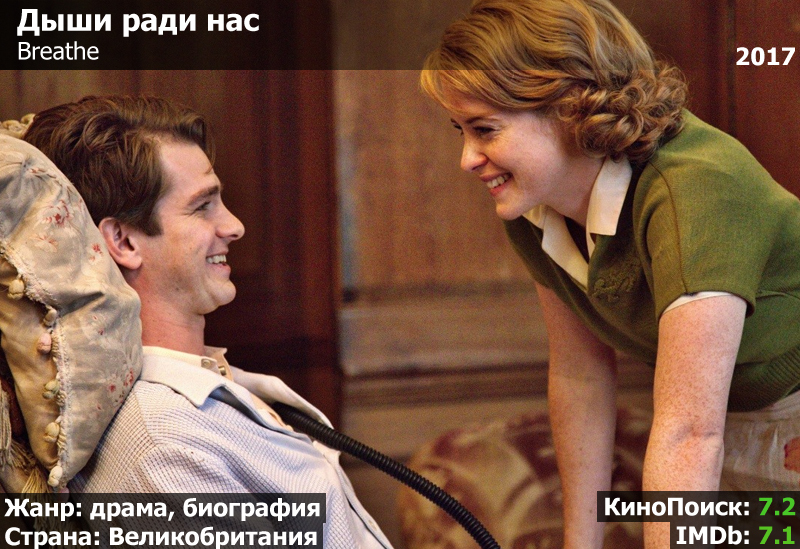 Да, скажу честно, это далеко не самый лучший биографический фильм. Но он совершенно точно и не самый худший. Такой, знаете ли… на четверку с минусом. Может быть даже просто на четверку. Смотреть вполне можно, получать удовольствие, переживать — тоже. Ведь история, по которой он поставлен, потрясающая. Главная роль у Эндрю Гарфилда. Ставил данное британское кино Энди Серкис, и это, кстати, его дебют на режиссерском кресле (уже не первый в нашей подборке — видимо, с биографий легче всего начинать). Для дебюта такого уважаемого человека очень неплохо.