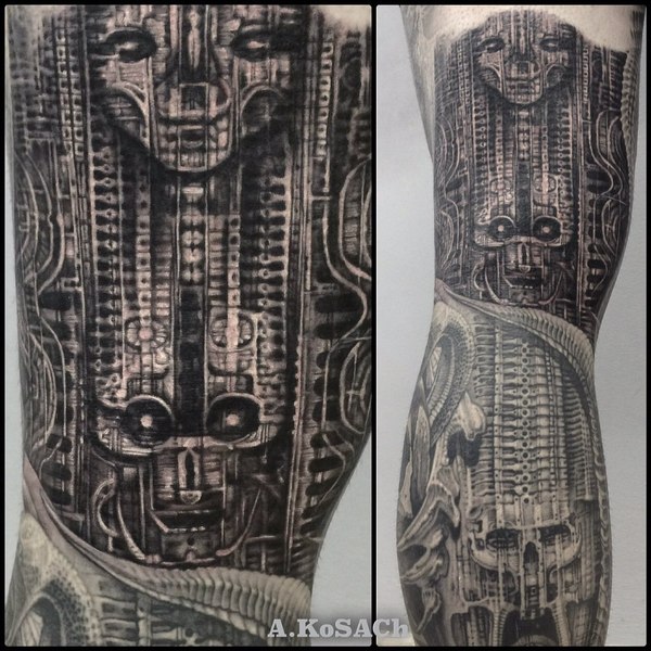 Биомеханика – один из сравнительно молодых и при этом наиболее оригинальных стилей тату. Возник он в 80-е годы 20 века благодаря специфическим работам швейцарского художника Гигера. Ориентируясь на оригинальные изображения, многие мастера тату начали создавать механико-реалистичные картины на теле, а особой популярности этот стиль тату, ставший олицетворением кибернетизации человечества, достиг в последние десятилетия с широким развитием компьютерных технологий.