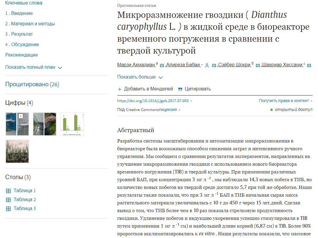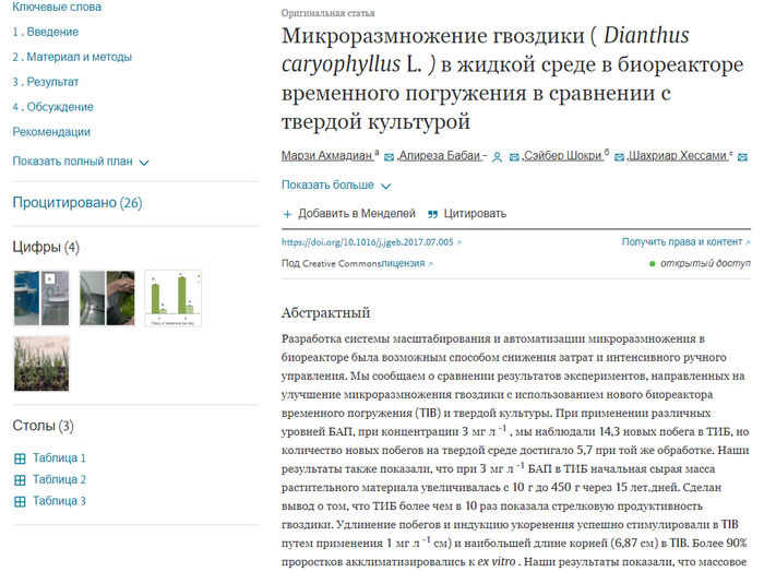 Статья где изучалась технология микроразмножения гвоздики в биореакторе: https://www.sciencedirect.com/science/article/pii/S1687157X1...