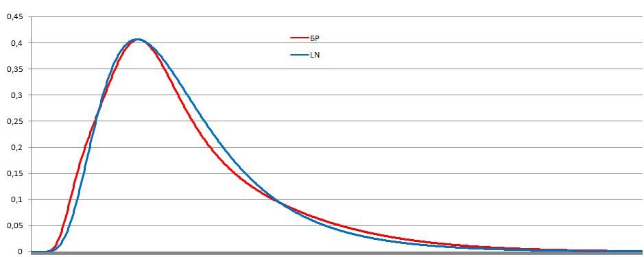 В сравнении с логнормальной функцией распределения она выглядит следующим образом: