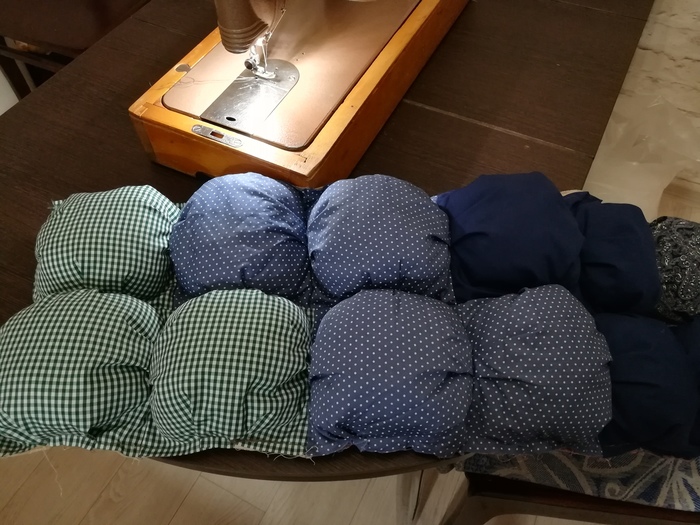 Пришиваем мешочки друг к другу линиями по 10 штук, получается такая заготовка: