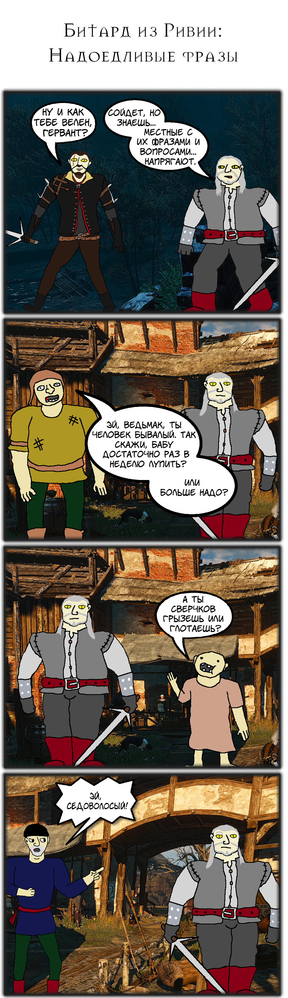 66 Damian5 9 лет назад Битард из Ривии: Надоедливые фразы Специально для Лиги Геймеров Пикабу: https://vk.com/pikabugamersleague [моё] Ведьмак Юмор Комиксы Ведьмак 3: Дикая охота Длиннопост Лига геймеров