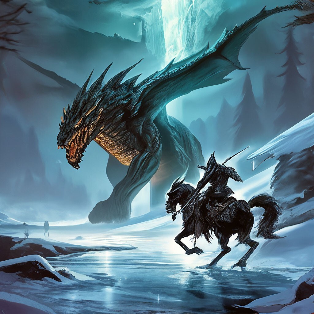 Если посмотреть мои предыдущие заметки, последние семь, то можно составить представление о визуальной составляющей моих книг посвященных королевству Мериаречья. Данный пост не исключение. В нейросети Шедеврум мне захотелось получить изображение одного интересного момента. А именно битвы князя с драконом.