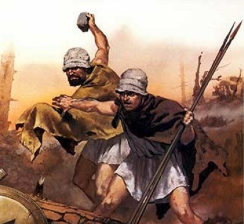 На картинках их обычно изображают с луками и дротиками. Но в источниках я, раз за разом вижу рассказы о том, что пельтасты зачастую были в буквальном смысле голозадые и тупо метали подобранные прямо на месте камни. Иногда на этом заостряется внимание, иногда это говорится вскользь и непонятно. Может, имеется в виду, что пельтасты обстреливают врагов из пращи. Если почитать краткую выжимку про битву на острове Сфактерия, то можно подумать, что суть в том, что тяжелые гоплиты не могли догнать легконогих голозадиков, устали и сдались.