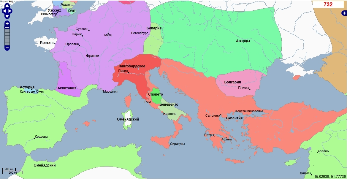 Вторая же поскромнее — это было всего-лишь отражение грабительского набега на гребне уже угасающей волны арабского завоевания. Да, если бы франки проиграли, скорее всего часть их земель присоединилась бы к Халифату, но скорее всего, так бы быстро и отвалилась от него, так как центр его силы находился в тот момент в Дамаске и смотрел он больше на богатый Константинополь, чем на нищую (по меркам востока) Франкию, с которой и взять-то особо нечего было, да и престижа там особо не виднелось. Да и где Дамаск, а где Пуатье, вы на карту вообще смотрели? А так — арабы проиграли и дальше особо лезть не захотели в силу вполне себе объективных внутренних причин.