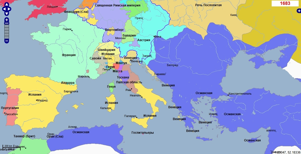 Во-вторых, в истории случилась и другая, куда более судьбоносная битва, христиан с мусульманами, которая реально поставила точку в их продвижении в Европу — куда более глубоком, чем у арабов времён Омейядов. Я про осаду Вены османскими войсками 1683 года. Да, это когда крылатые гусары Яна Собеского оказались быстрее сапёров Мустафы-Паши, копавших под стены города. Вот когда натурально почти пол-Европы было под исламским владычеством — вы только на карту взгляните.