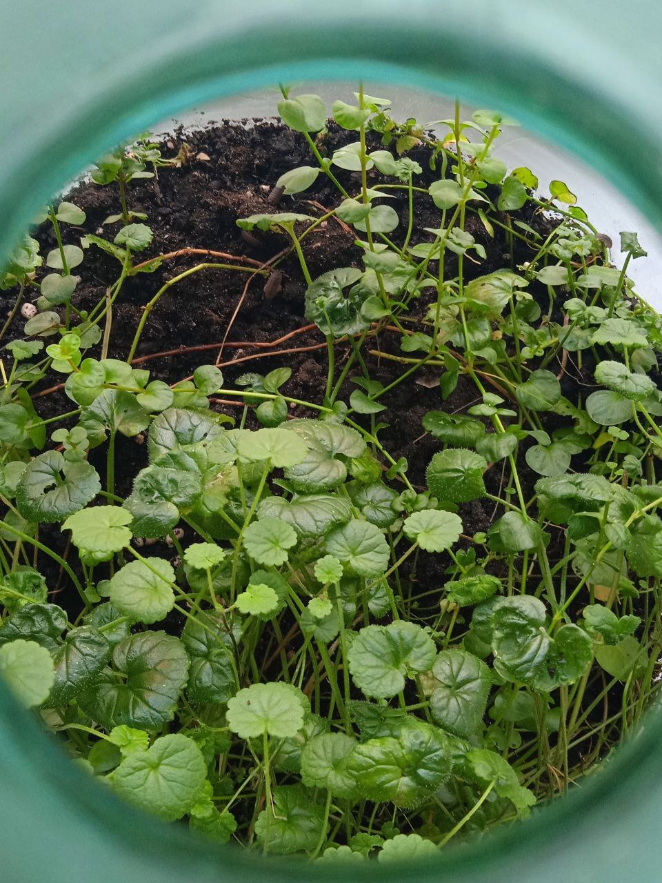 Сейчас в бутылке доминируют будра плющевидная и вербейник монетный. На фото - новые ростки вербейника, которые постепенно занимают место мокрицы и кислицы.