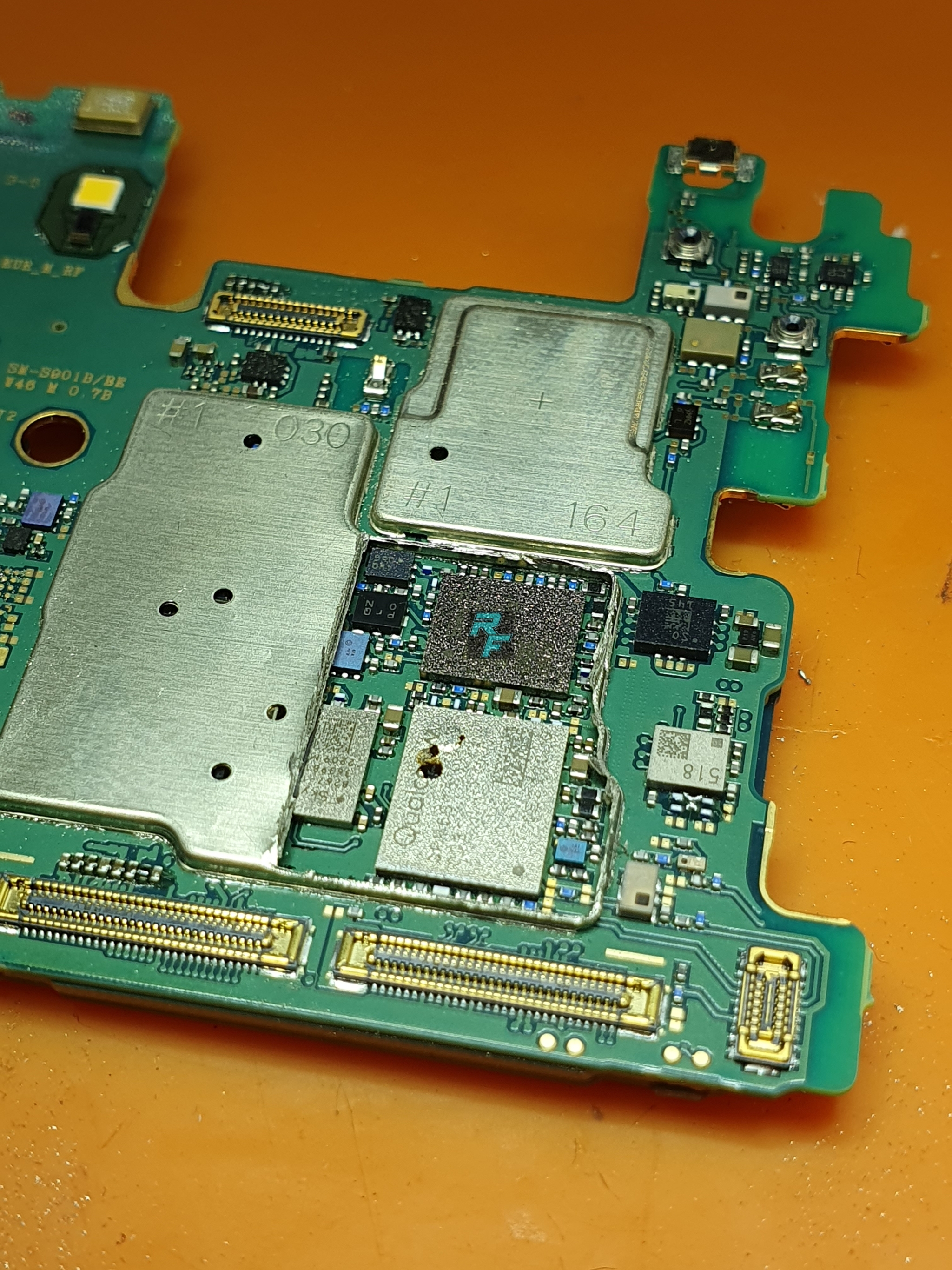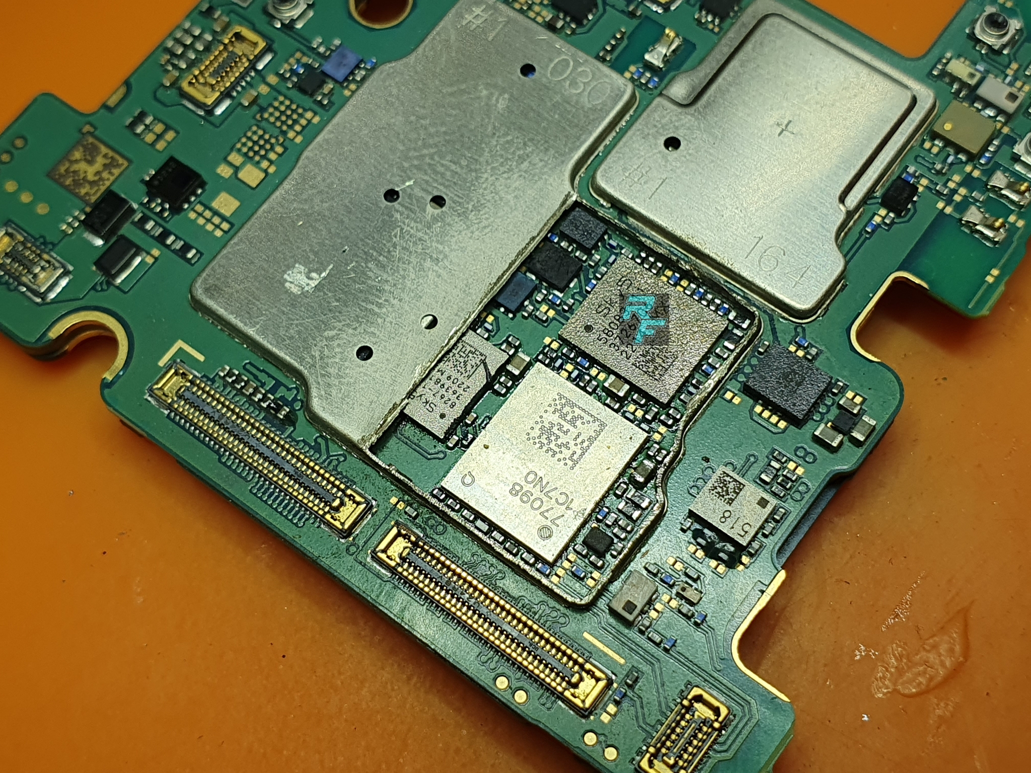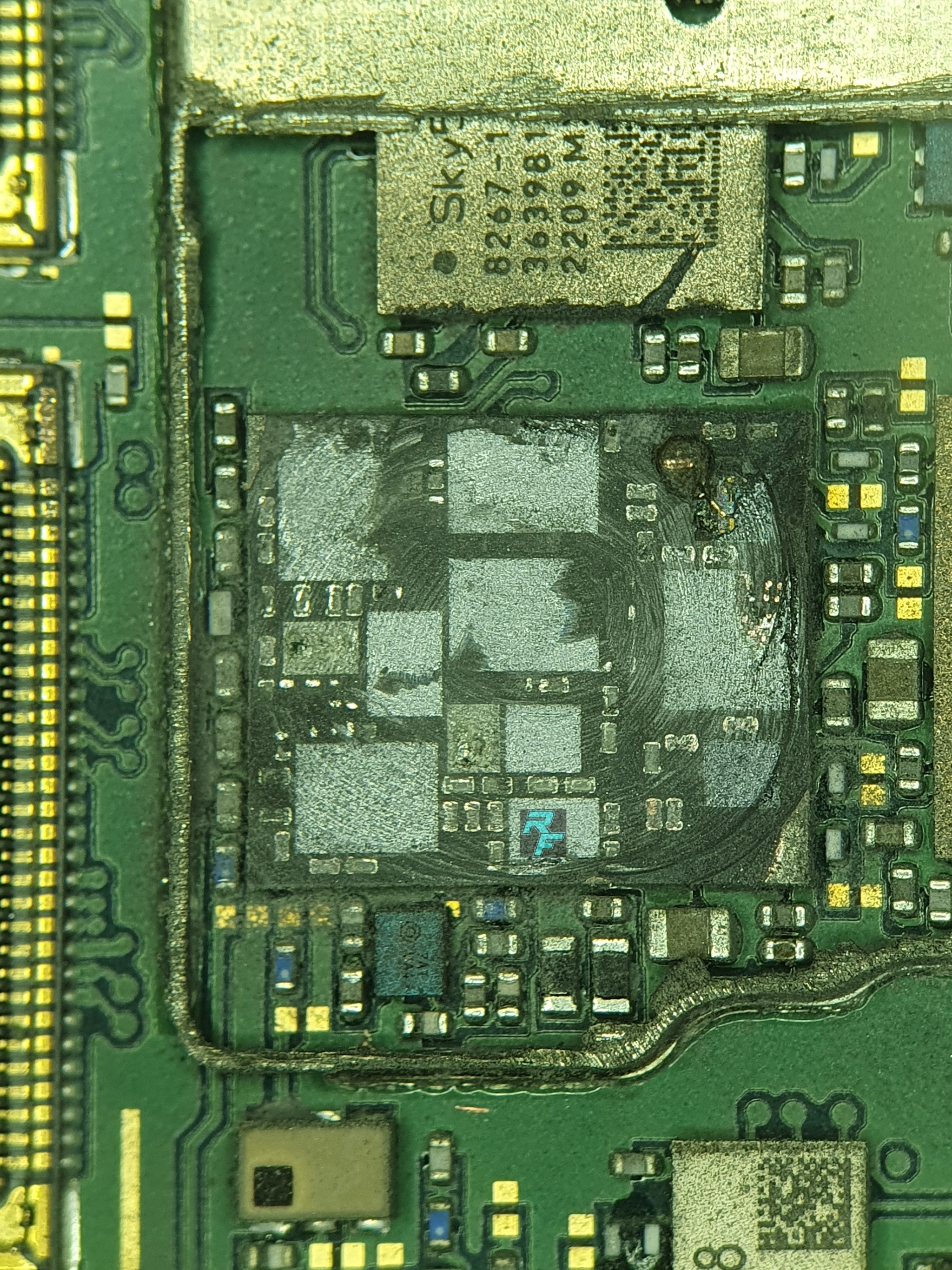 Внутри этой сборки есть ещё немножко микросхем и поэтому часть микросборки работала, отображая сеть, а часть выгорела и не давала по rffe шинам нормально функционировать остальному.