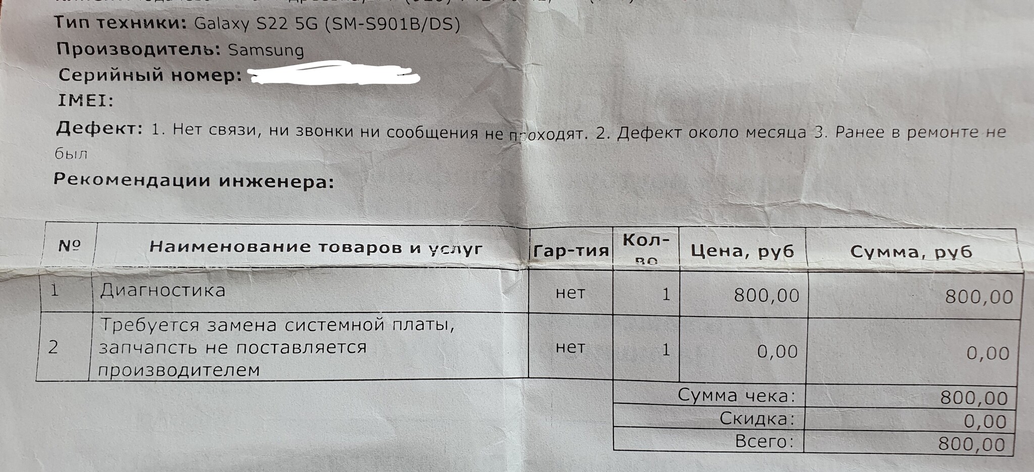 А вообще понятно. Короче. Телефон тупо пролежал на полке за 800р и скажу почему - ситуация не стандартная, поэтому сервис не знает как её сделать и если учесть, что эта контора берёт в ремонт от фонариков до подводных лодок, то качество диагностики тут сомнительное и ремонтируют в основном крупноузловым методом, отбирая из всего приходящего в ремонт лёгкое и с которого быстро можно срубить денежек по типу замен дисплеев, аккумуляторов и прочих мелких радостей, а за остальное берут диагностику и хорошо.