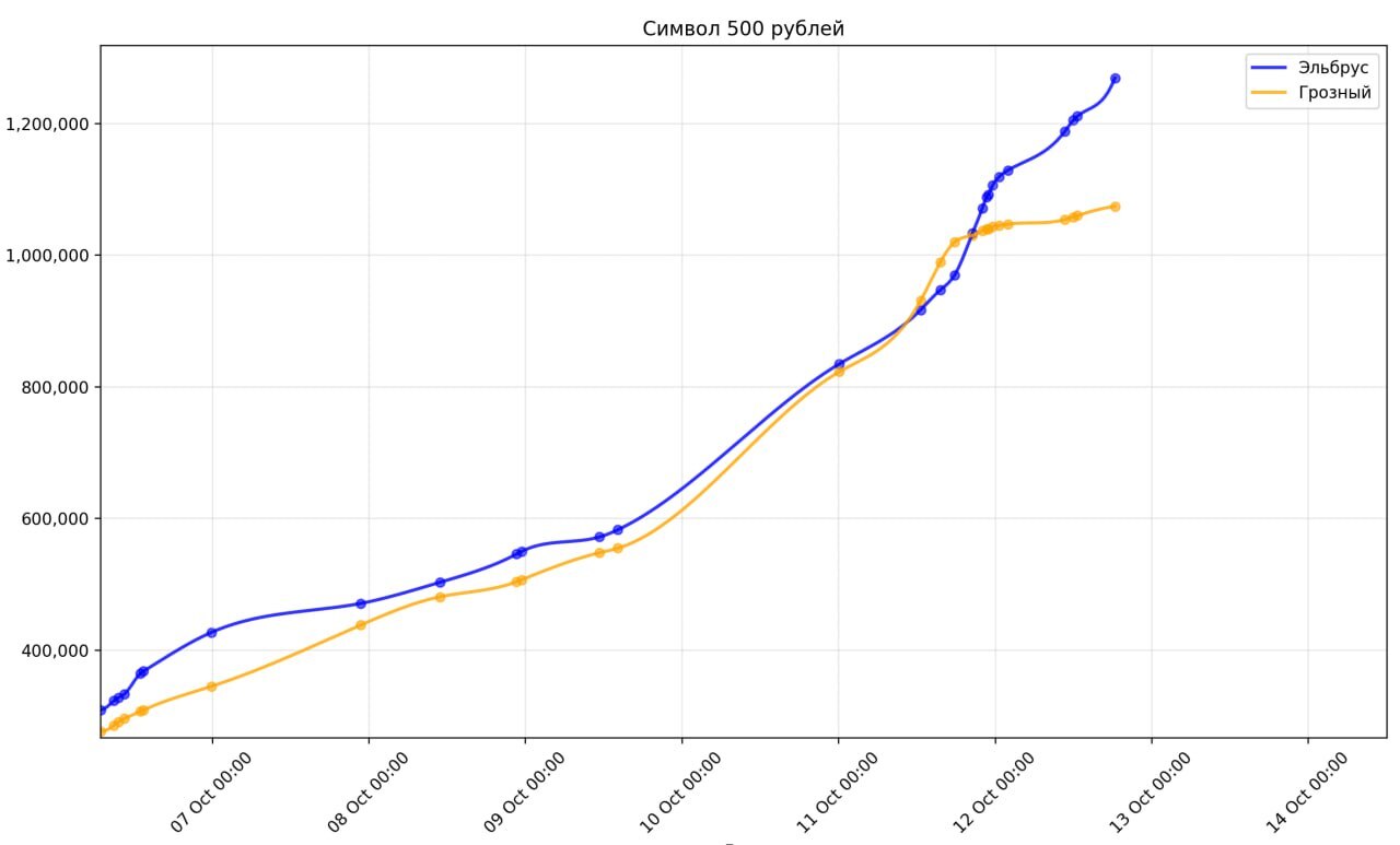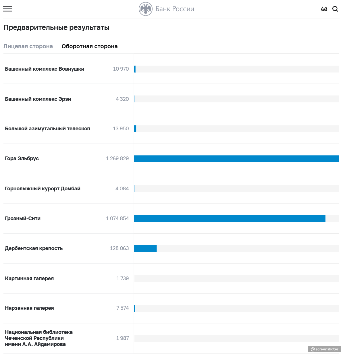 Ключевой и переломный день был вчера 11 октября. С утра Грозный вырвался вперед, но после того как ЦБ оставил только голосование через Госуслуги, убрав лазейки для накруток - голоса за Грозный перестали расти, а благодаря распространению в соц сетях Эльбрус уверенно набирал голоса.