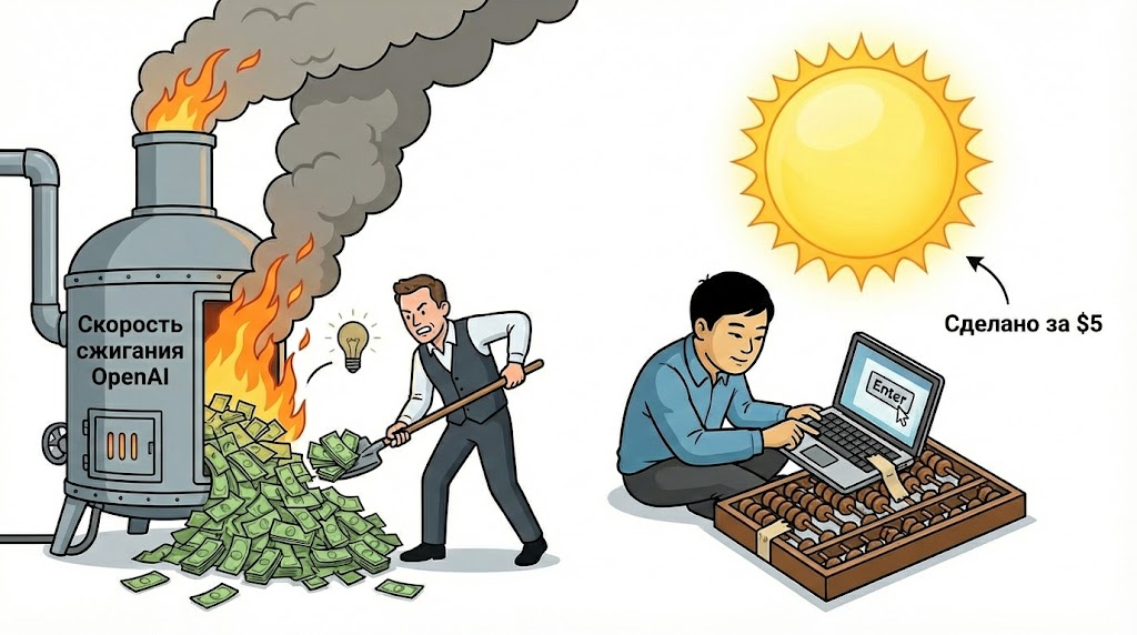 А потом появился DeepSeek. Китайский стартап сделал то, что в Кремниевой долине считали ересью: они создали модель уровня GPT-4, потратив на это бюджет, которого в Google хватило бы только на бесплатные обеды для программистов. Они не просто догнали — они показали, что американская модель разработки чудовищно неэффективна. Пока Долина заливает проблемы деньгами, Китай решает их математикой и оптимизацией кода.