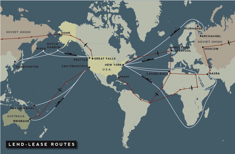 Ленд-лизовские грузы попадали в СССР пятью маршрутами: посредством арктических конвоев в Мурманск, по Черному морю, через Иран, через дальний Восток и через советскую Арктику. Наиболее известным из этих маршрутов, безусловно, является мурманский. Героизм моряков арктических конвоев воспет во множестве книг и кинофильмов. Однако основной поток грузов шел через Дальний Восток и Иран. Одной из главных причин такого положения дел стала опасность северного пути из-за активности немцев.