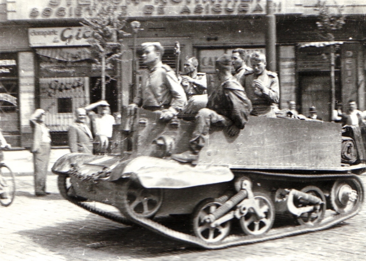Солдаты Красной Армии в Бухаресте на британском Universal Carrier,