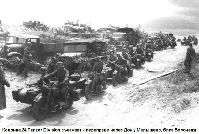 24-я танковая дивизия 47-го танкового корпуса армии Г. Гота, форсировав р. Дон, ворвалась в западную часть Воронежа. Севернее 24-й дивизии форсировала Дон и образовала два плацдарма «Великая Германия».