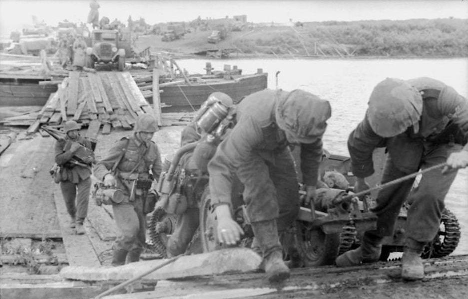 К переправам через Дон бесконечным потоком отступали части 40 армии, разрозненные группы бойцов и командиров, двигался многочисленный автотранспорт, различные тыловые службы, шли беженцы. Из-за непрекращающегося подхода к реке отступавших войск нельзя было взорвать мост и заблаговременно преградить врагу путь на восточный берег.
