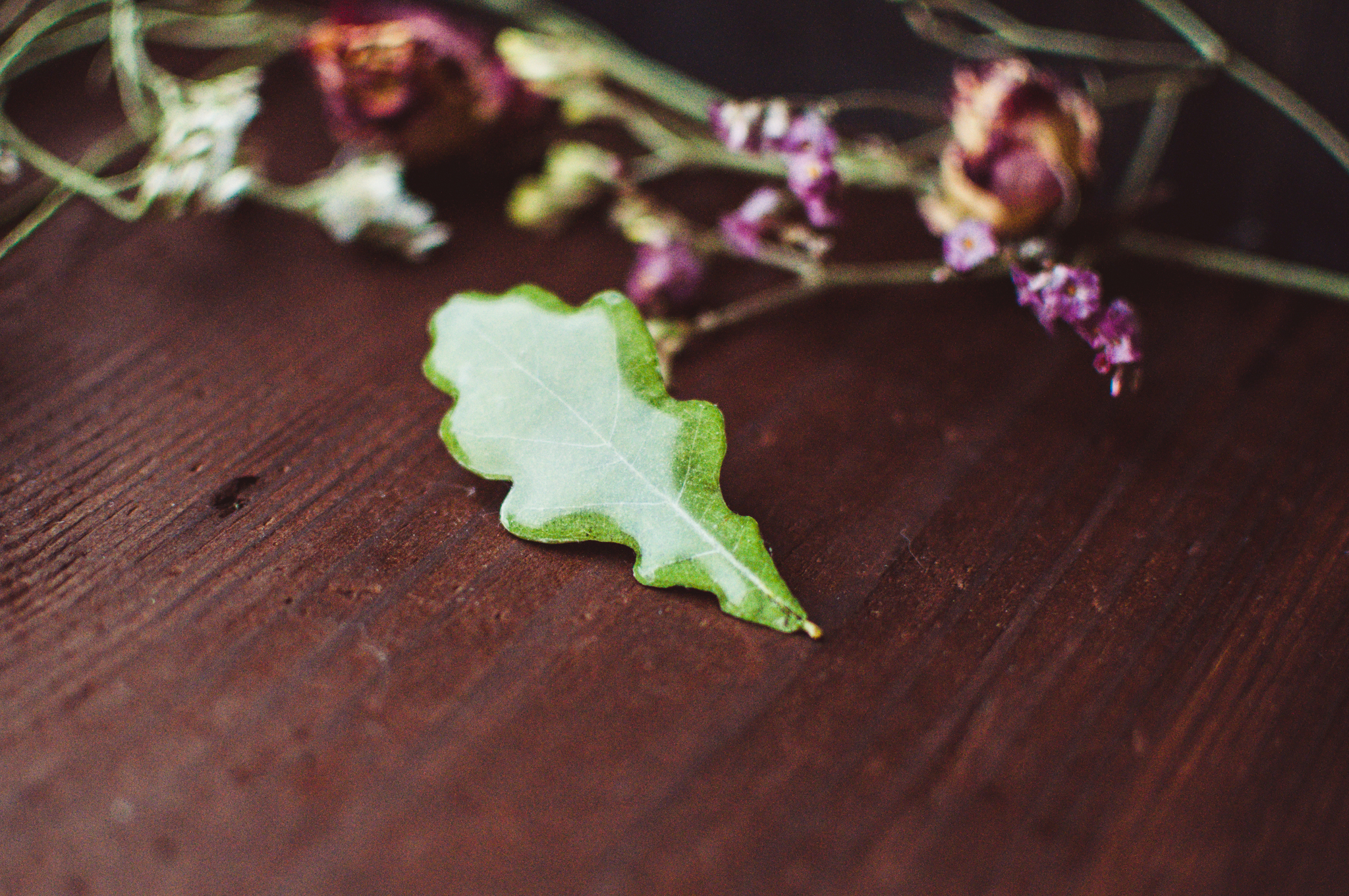 Брошь с листочком дуба. Покрыта с обеих сторон в 2-3 слоя эпоксидной смолой.
