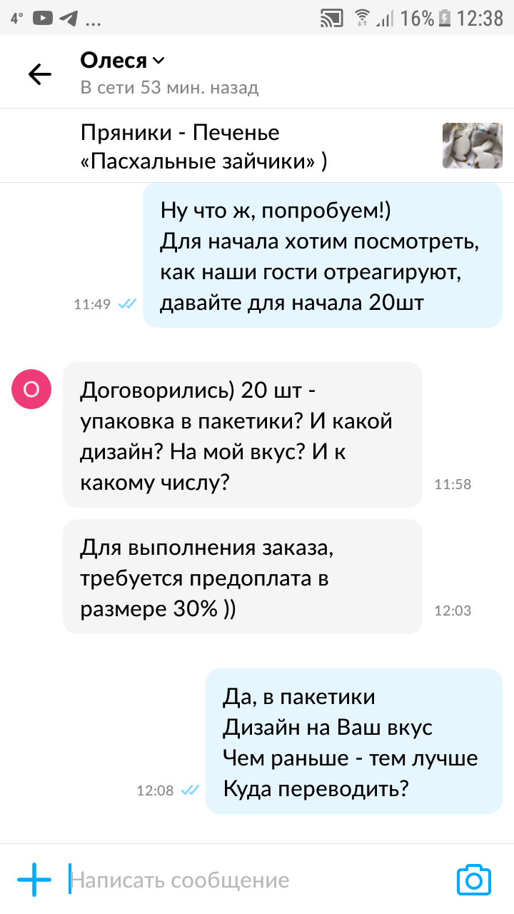 P.S. выложил не всю переписку, т.к. это основные моменты, ничего не утаил, остальная часть - это уточнения, не имеющие никакой ценности в данном контексте