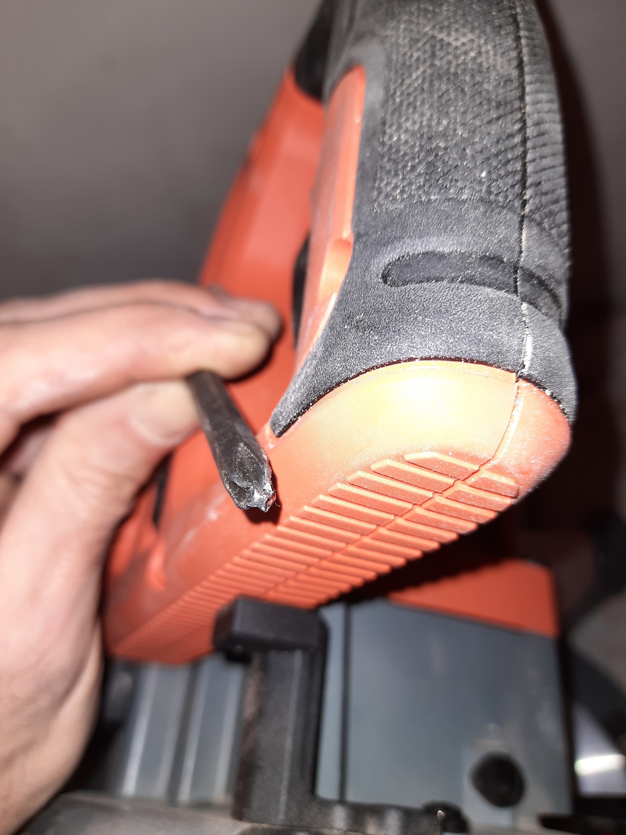 Площадка у метабо лучше чем у блэк-энд-деккера, здесь какие то арматурины вместо раздвижной части, боковой упор тоже по ощущениям хуже, раздвижная часть в рельсах болтается, хотя после фиксации всё становится ровно. Болты фиксации удлинителей площадки сделаны под "филипс", то есть вот такие ( × )
