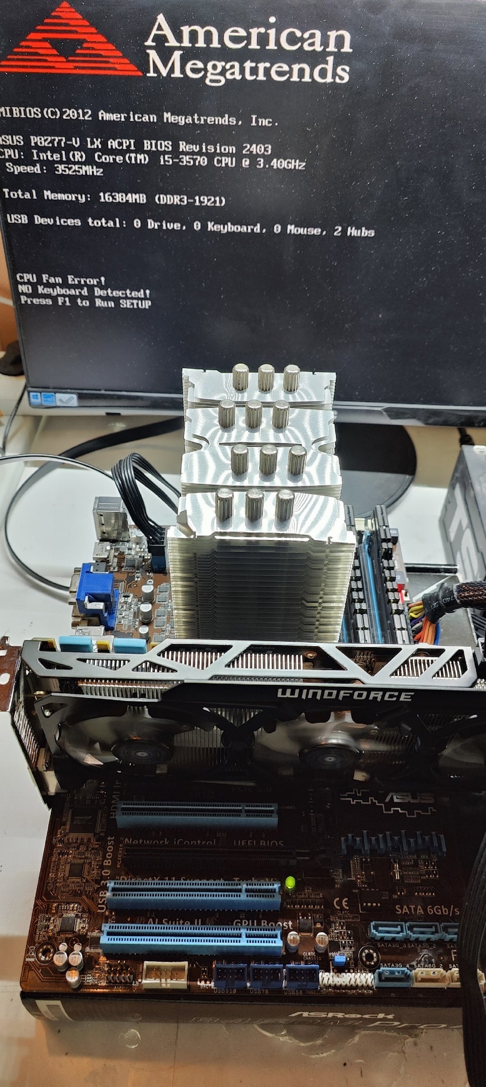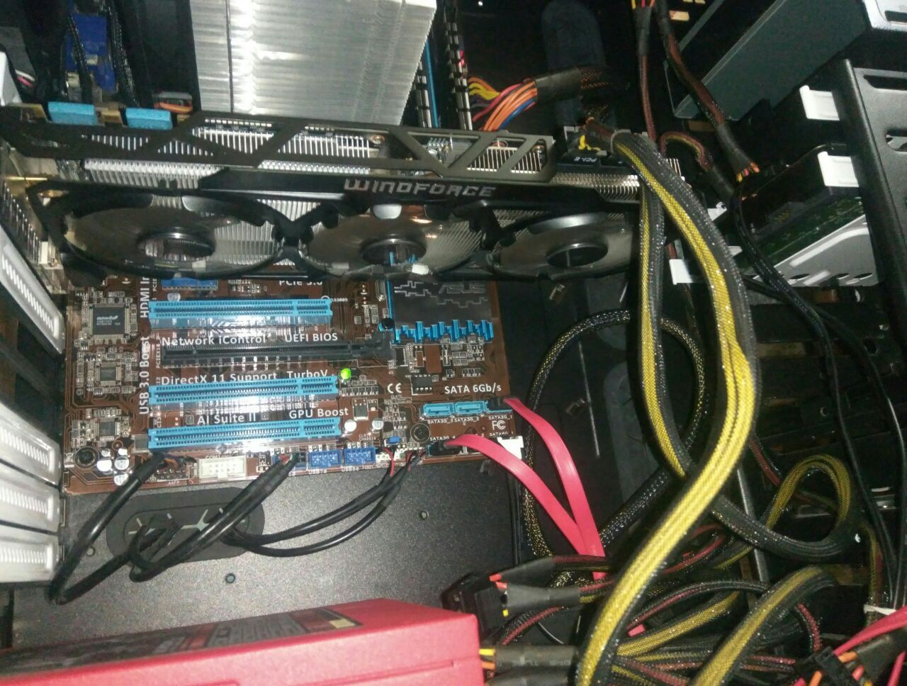 Включаю питание обратно, завыли на всю вентиляторы на видяхе, (770 печь), подозрительная надпись не исчезла. Открываю системник, начинаю искать волшебный дым. Мне повезло, волшебный дым остался внутри компа, путем нескольких операций обнаружил что не работает слот PCIx16 на матери (синий) и сама видяха.