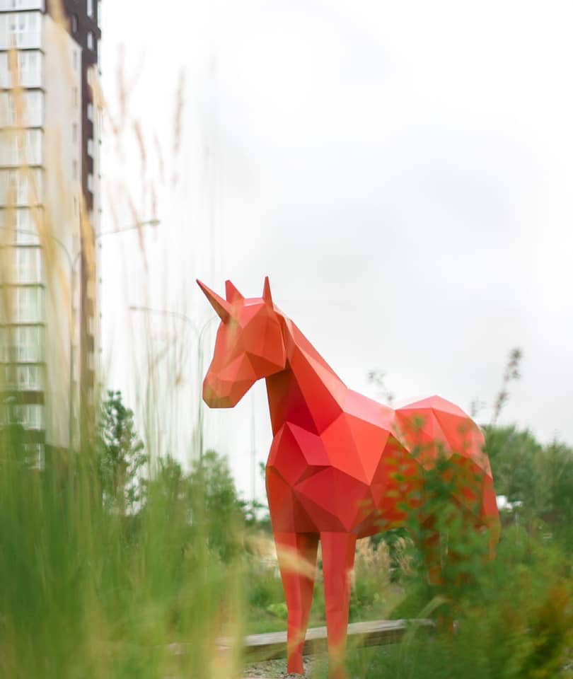 В элементах дизайна и малых архитектурных формах присутствует образ коня, отсылающий к названию жилого комплекса «Фаворит». Красный единорог, шахматный конь в зоне настольных игр, скамейки в виде гигантских подков, стилизованные фото-зоны и кони-качели символизируют животное, имеющее наибольшие шансы на победу.