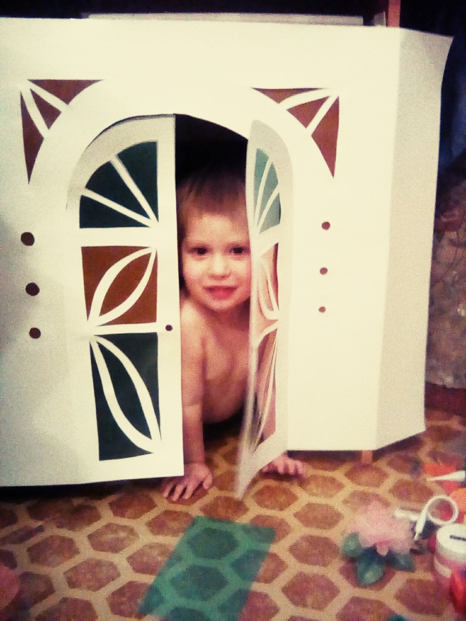 Адаптировала совковые тумбочку и холодильник просто ватманами с заполнением окошек цветными частями скоросшивателей ;)