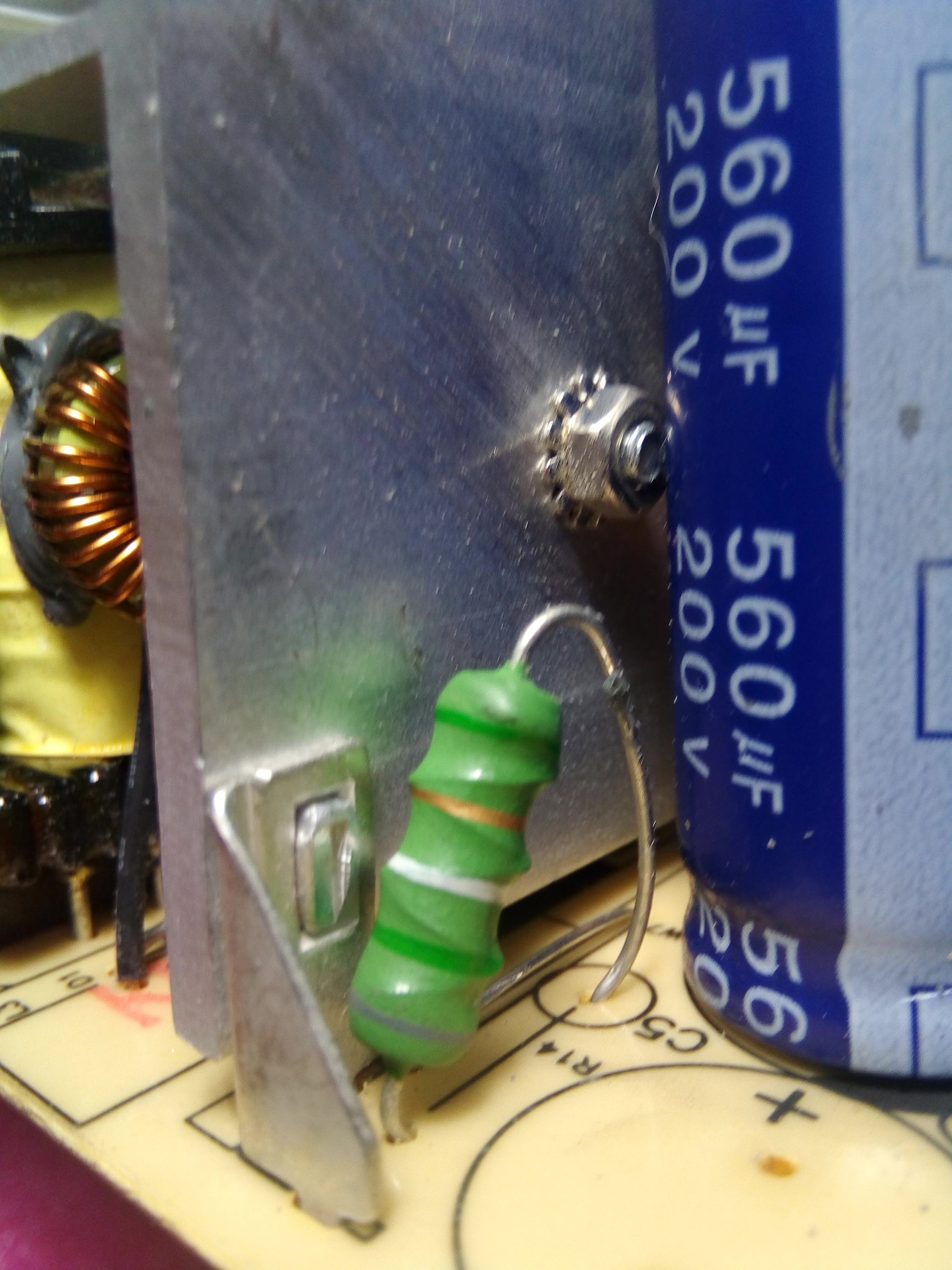 Похоже, кондер высох, осмотри визуально С21,С22 и остальные на предмет вздутия. Плату после выключения руками брать осторожно, разрядив высоковольтные конденсаторы С1и С2 (желательно резистором на 2Вт 100 Ом, дабы не сильно искрило)