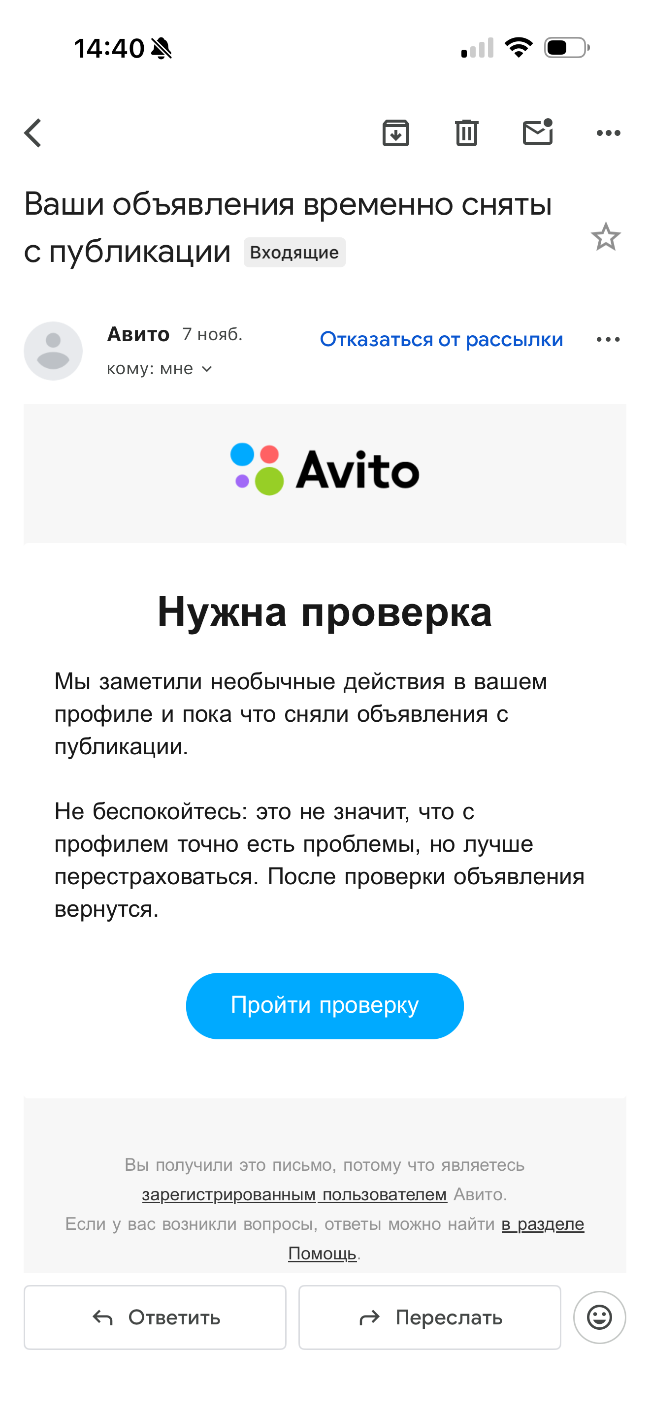 Ну ладно, думаю я, уже разместил, фото добавил, оплатил, не буду ничего менять. Затем на почту приходит письмо: