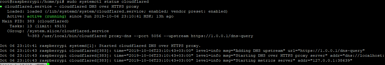 Для использование DNS over HTTPS используем сервис от Cloudflare на Raspberry pi 3 и для установки и настройки выполняем следующие команды: