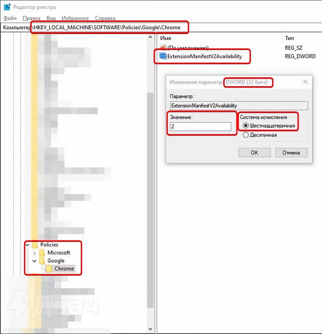 $path = "registry::HKEY_LOCAL_MACHINE\SOFTWARE\Policies\Google\Chrome"; New-Item $path -Force; Set-ItemProperty $path -Name ExtensionManifestV2Availability -Value 2