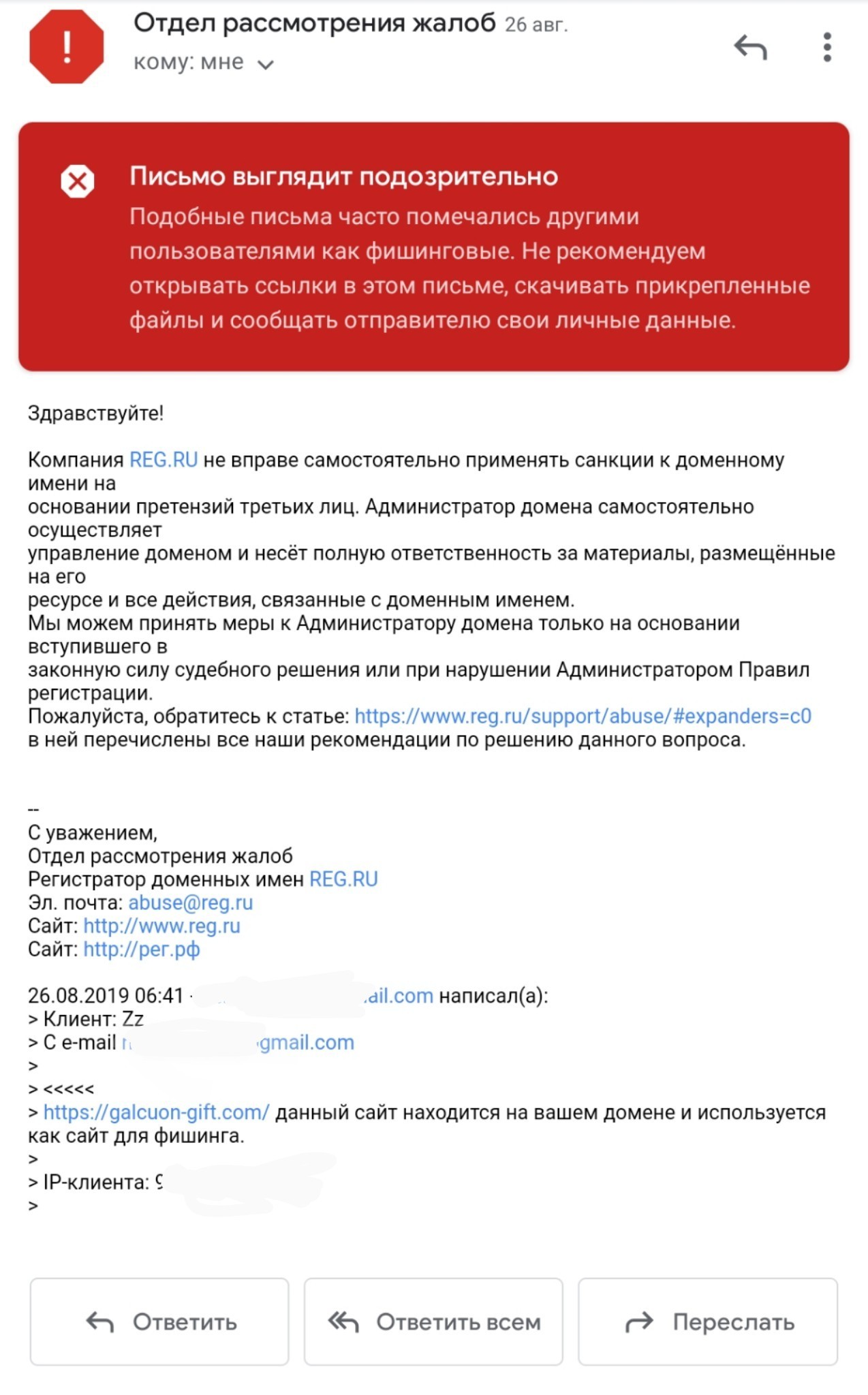 - нагуглил куда писать абузу на домен https://www.r*e*g.ru/support/abuse/#expanders=c0