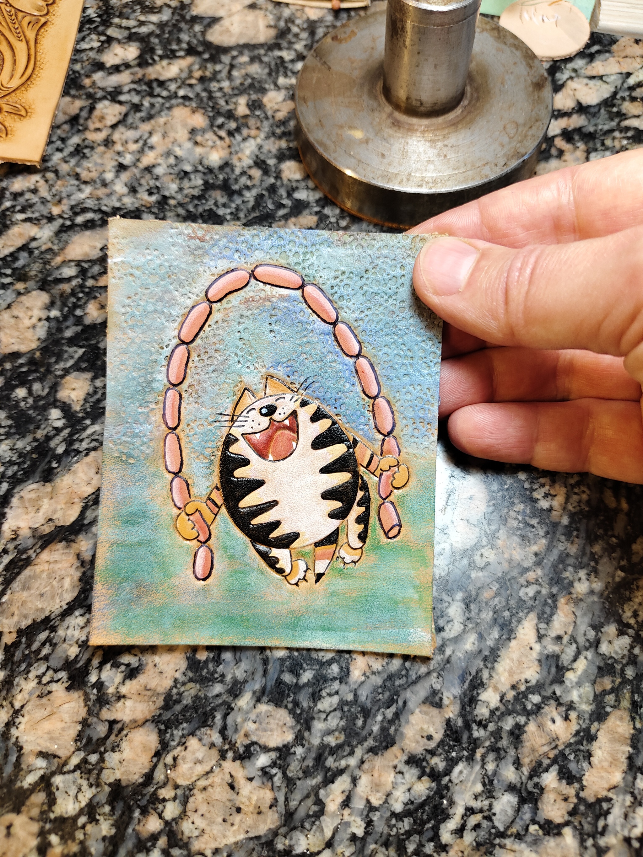 Обложка с блокнотом а6 формата, из натуральной кожи, с рисунком, ручное тиснение и роспись.