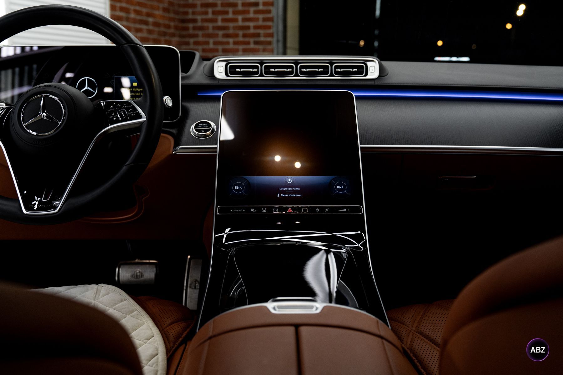 А потом — чтобы центральная консоль, экраны, всё глянцевое внутри — тоже было в броне. Но прозрачной. Потому что Maybach не должен царапаться от часов на руке.