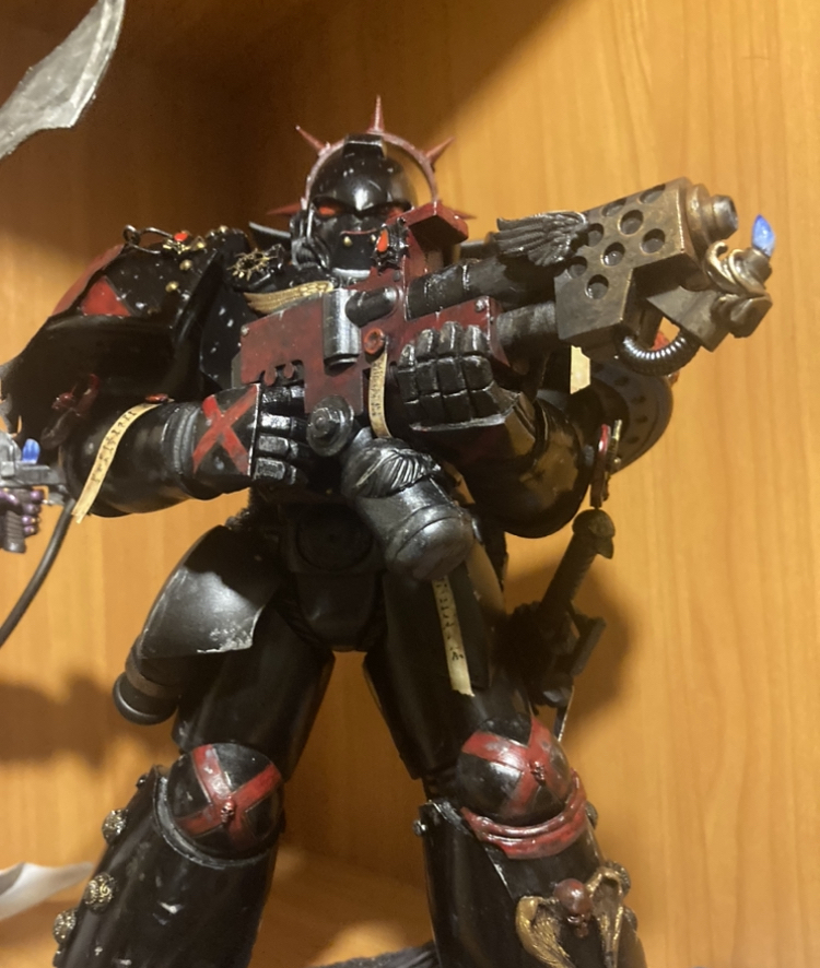 Собрав их воедино обратил внимание, что у одного нет оружия в кисти. Начал искать, в запаснике обнаружил мельтопистоль и уже даже его прикинул, как увидел отдельно лежащее знамя.