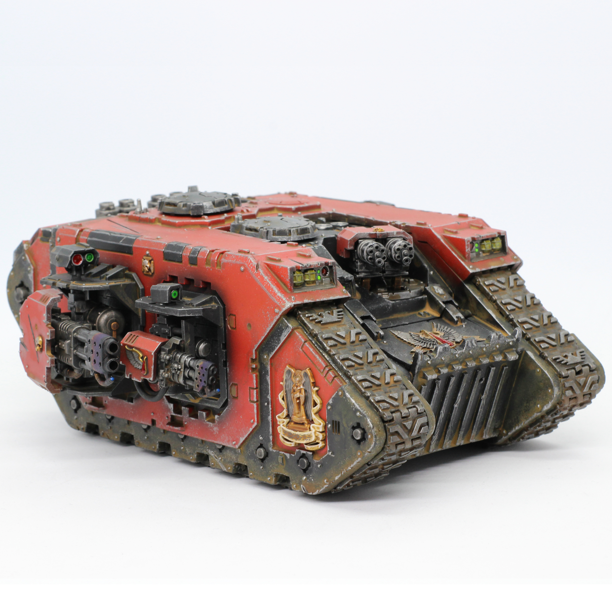 Дратути. Продолжаю покраску бладов. Лэндрейдер. Баал Предатор, конечно, знаковый и уникальный юнит бладов, но куплен был по большей части для одной цели - маленькие спонсоны с тяжёлыми огнемётами, чтобы воткнуть их на этот величественный кирпич. Понятия не имею, есть ли у лендрейдера такая закачка в настолке, но увидев такой где то на просторах интернета, захотел такой и себе. Красить его было интересно, но какой же он огромный... Не тауситская манта, конечно, и даже не астрей, но всё же.