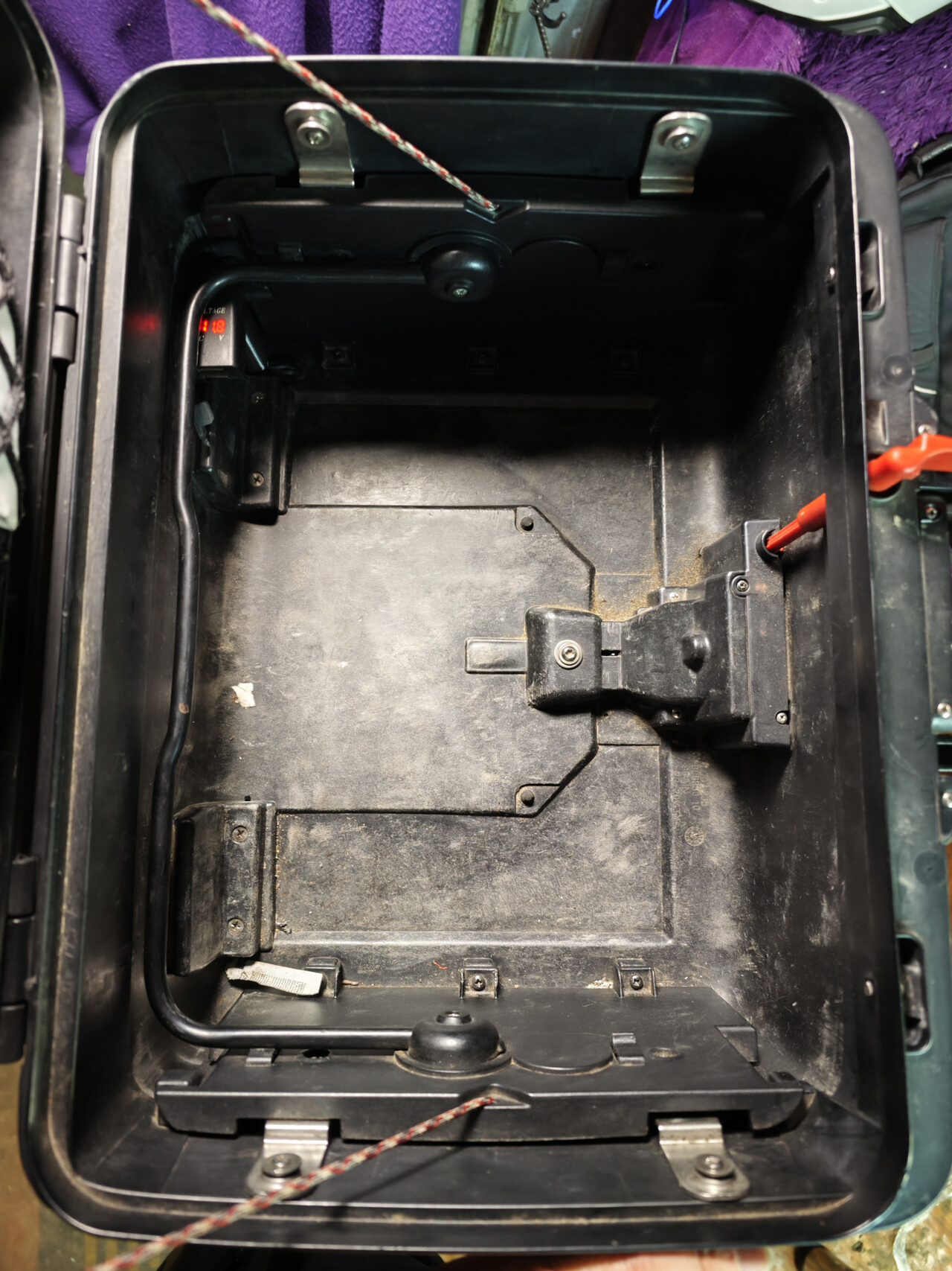 Недостойным можно смело назвать родной центральный кофр. В разложенном виде в это недоразумение влезает не всякий шлем, в сложенном это насмешка над кофрами в виде чемодана для документов. Успешному немецкому бюргеру подойдёт “дипломат” этот на работу отнести, для “мотоцикла для приключений” это смешно, даже шлем не оставить. В 2013м году исправили. В остальном – норм кофры, опять же, если вы НЕ планируете полноценный бездор. Те кто планируют – и телелевер не берут, и сумки берут а не кофры. Если вам не важен разный вид кофров на гусе, лучше взять железку наверх, а варио по бокам, но нам с женой штатного набора хватило на поездку в Крым, при чём боковые кофры мы не раздвигали, так справились. Из опций – в правом кофре можно оставить шлем, но кофр надо разложить для этого. Некоторые вопросы вызывает и механизм, съедающий место в кофре. В боковых я бы его оставил, в центральном – убрал бы нахрен в поколении 2008го года. Тем более что мне достался верхний кофр с клинящим механизмом, а вот боковые идеально работали вплоть до продажи.