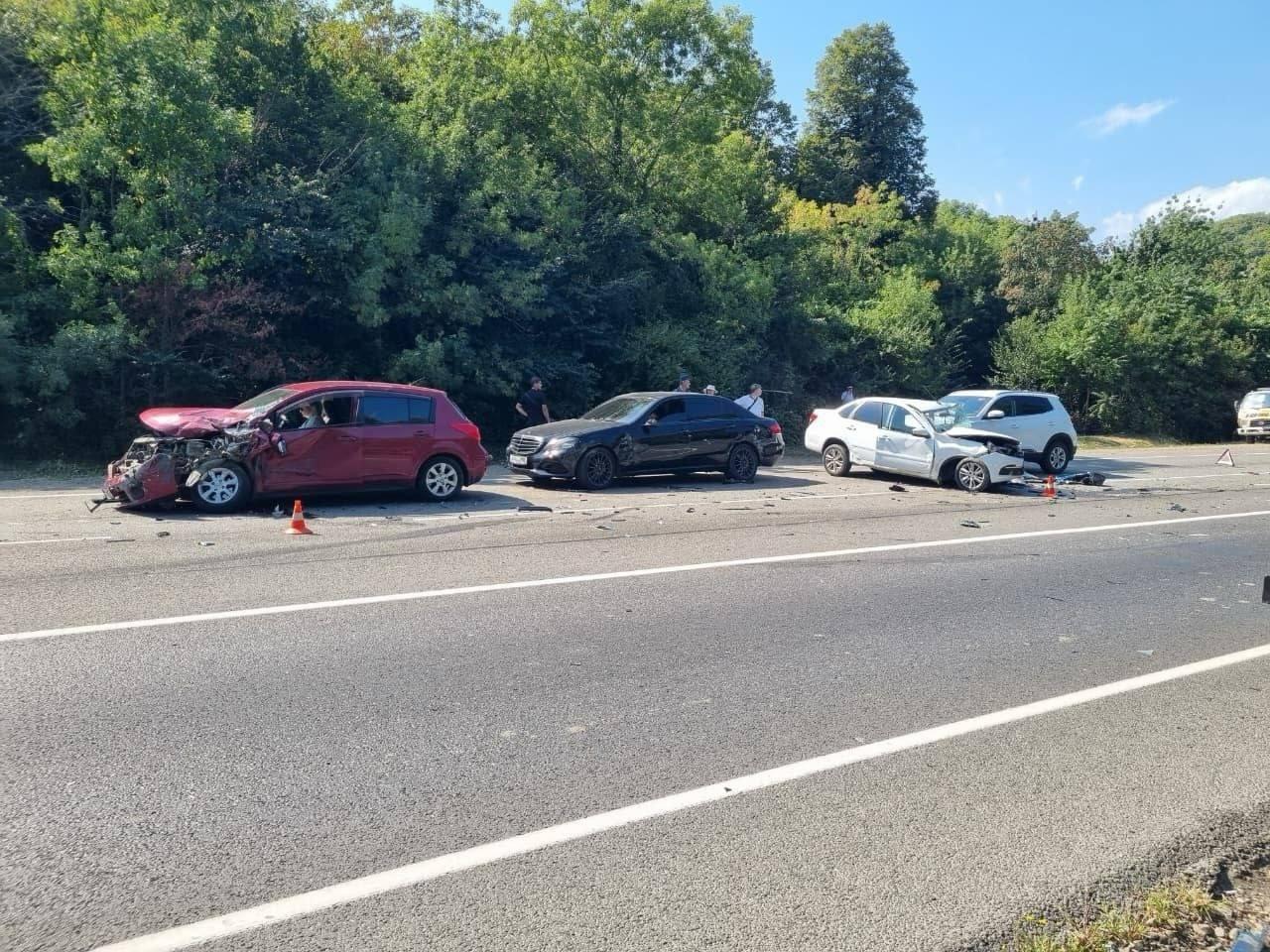 На федеральной автодороге «Джубга-Сочи» 55-летний водитель BMW выехал на встречную полосу и столкнулся с 5 машинами.